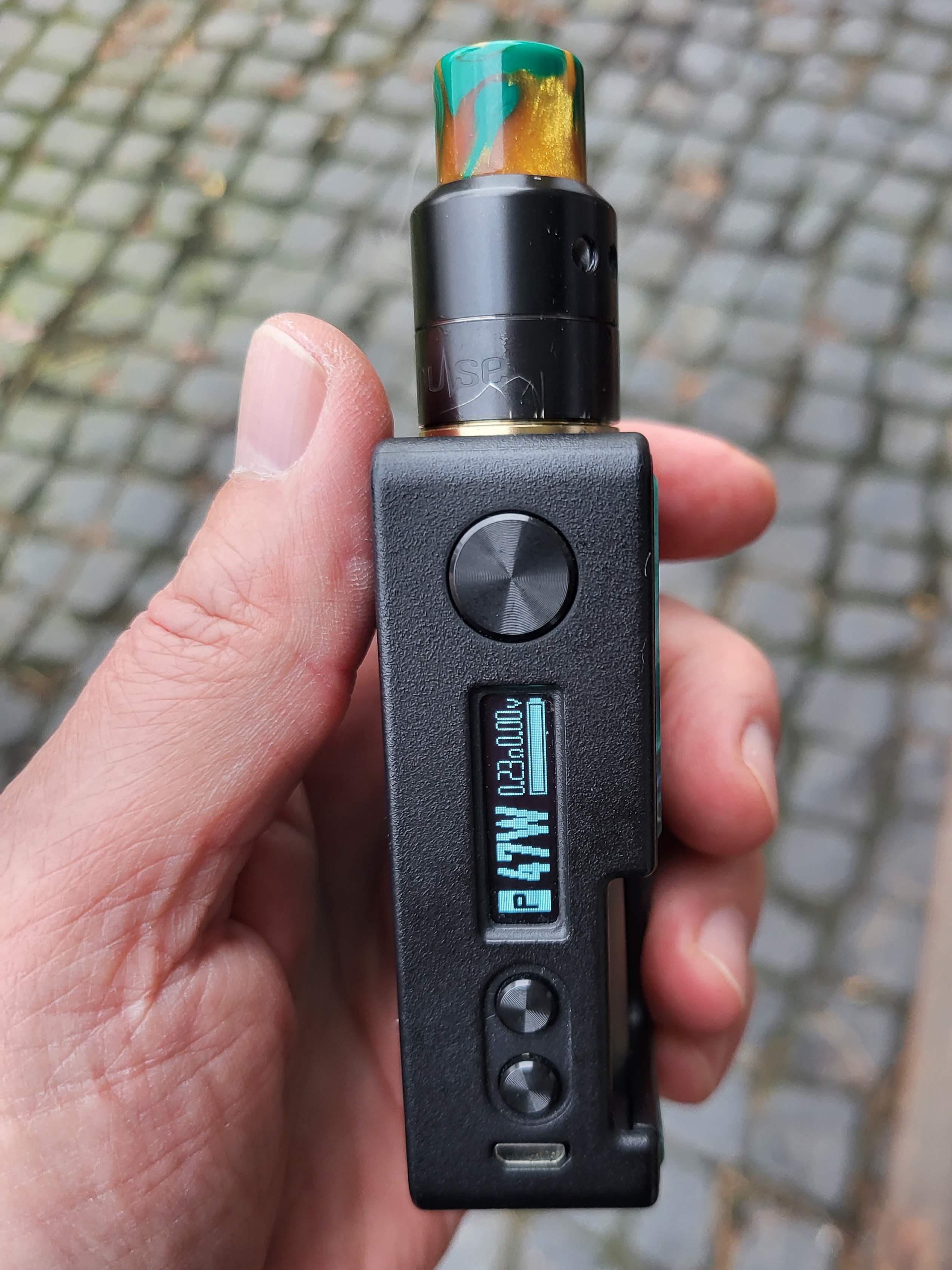 Also rasch in dem Pulse 22, ein Verdampfer den ich höchstens als mittelmäßig bezeichnen würde, eine Coil von Nifiz eingebaut, geefalockt und losgelegt.