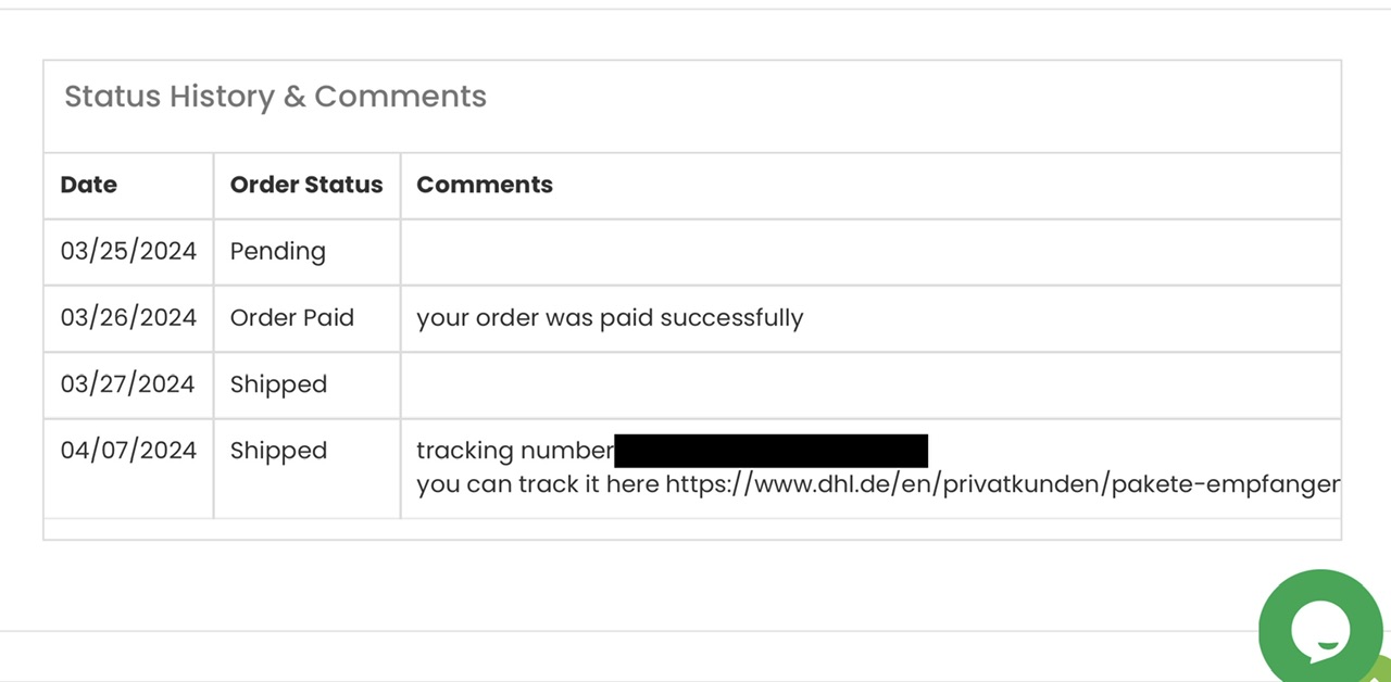 Kleines Update: Die Bestellung ist vorgestern vollständig angekommen. Nachdem der Status auf "shipped" gewechselt ist, hab ich eine Weile nichts gehört und auch keine Mail mehr mit der Trackingnummer bekommen. Habe aber täglich in meinem Account nachgeguckt und nachdem die DHL Trackingnummer hinzugefügt wurde ging es dann auch schnell.