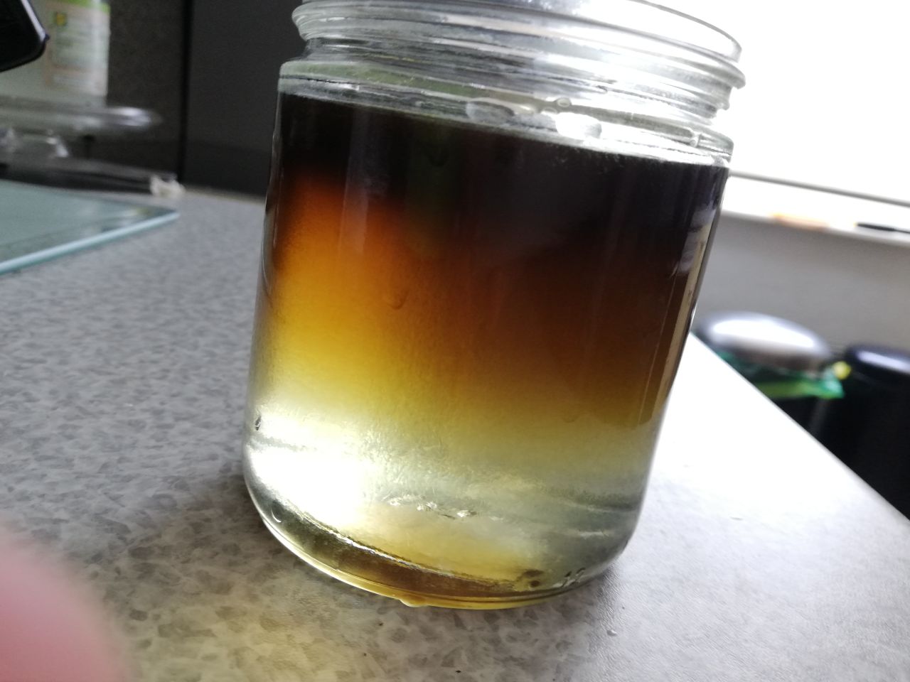 Nachdem ich den Tee herausgefiltert habe wurde mit 50:50 Base aufgefüllt.