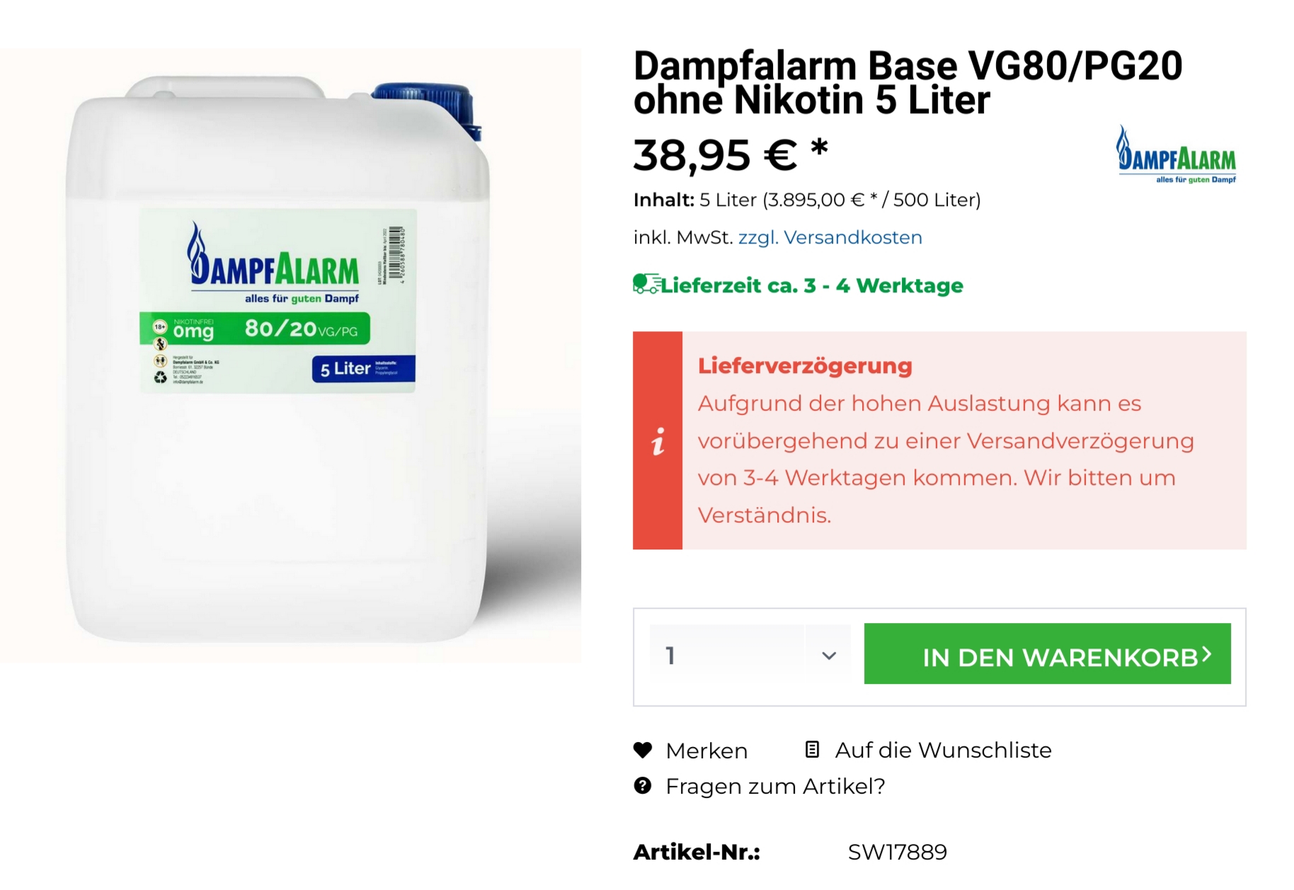 Ich hadere noch mit mir ob ich noch Base bei Dampfalarm bestellen soll oder nicht, 70/30 VG/PG ist schon fast zu dünnflüssig für Heiners Gentleman's Finest