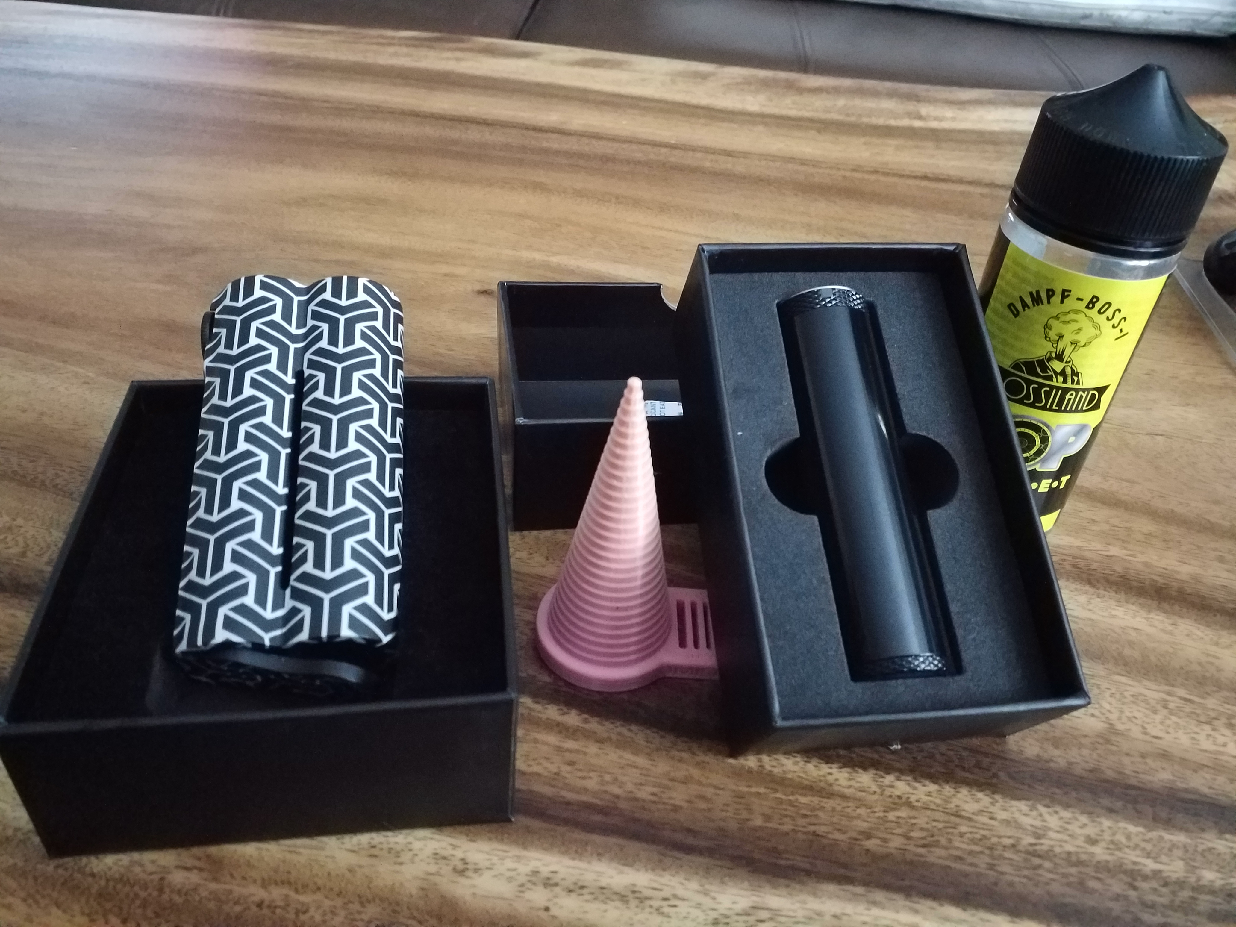 Eigentlich wollte ich ja gar nichts kaufen, aber ein Uwell Soulkeeper Tubemod nebst ein Squid Industries Barrel V3 wollten unbedingt mit....und ein Bossiland No.5 musste auch sein.