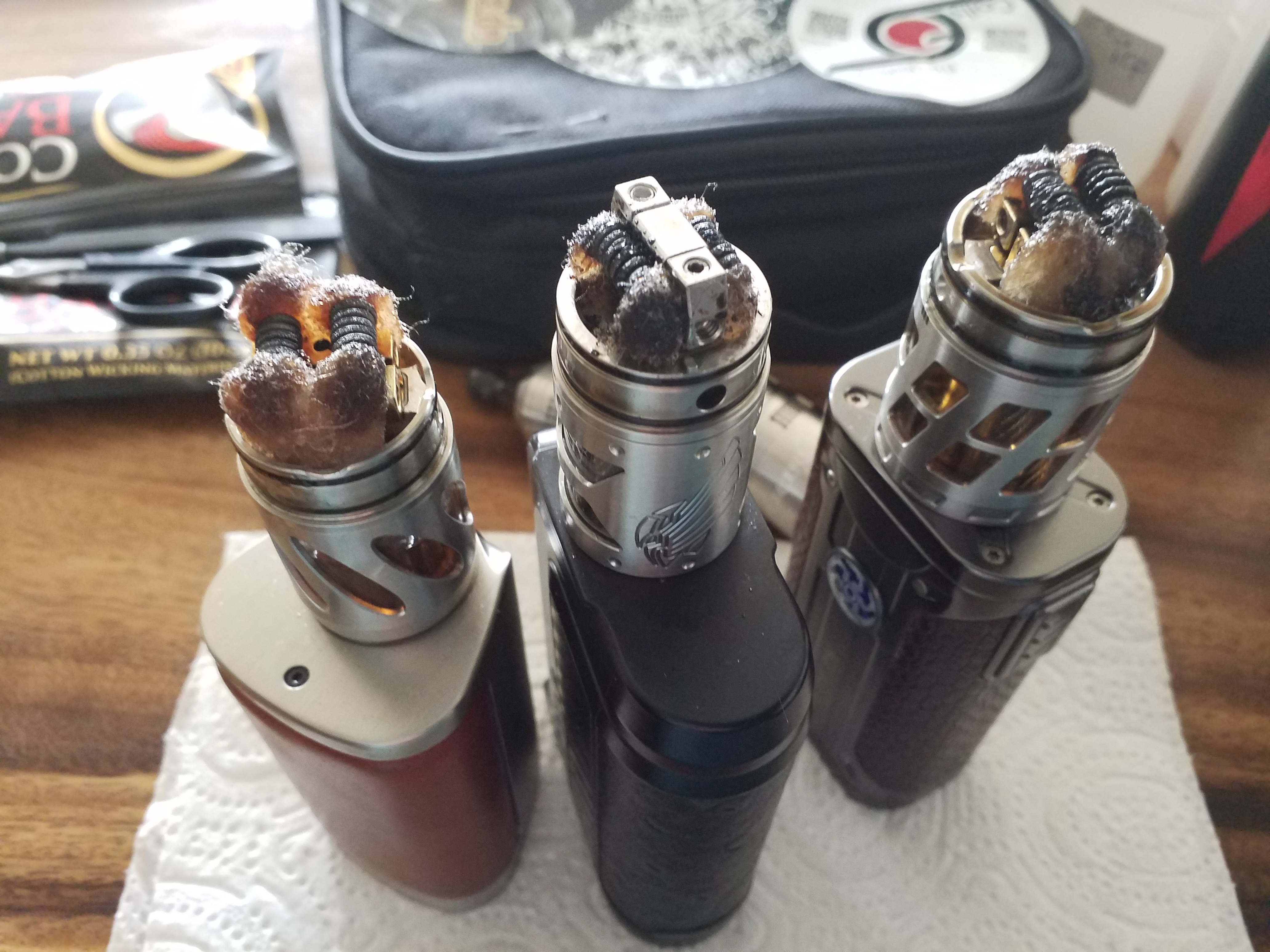 .Verdampfer für Hajo eingesteckt, Tröpfler auf den DOVPO geschraubt, Johannisbeergemisch eingepackt.....jetzt noch schnell versch. Verdampfer neu bewatten dann kann der Stammtisch kommen.
