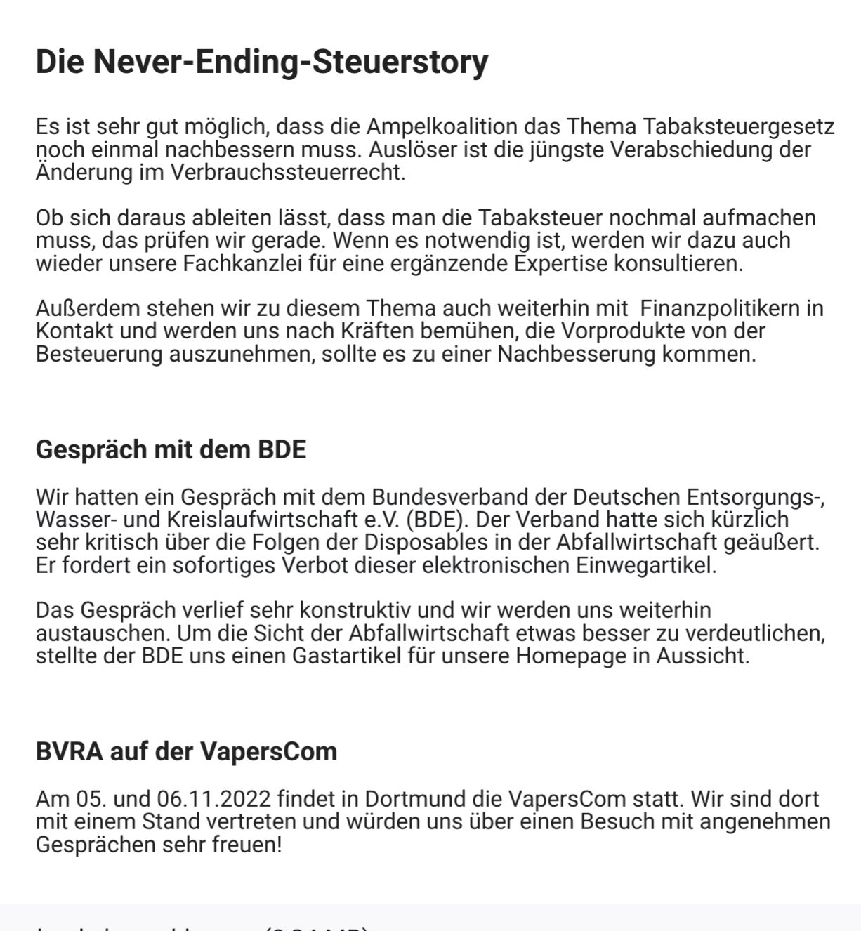 "Wenn ich da einen kleinen Kiosk nehme, der EINE Elfbar für 10€ verkauft, dann sind das keine 10€ Branchenumsatz. Das sind (Beispielwerte) 3€ bei Importeur, 4€ beim Großhandel, 5€ beim Zwischenhandel und dann 10€ beim Kiosk. Also 3+4+5+10 = 22€ und das bei 10€ realem Verkaufspreis am Ende".