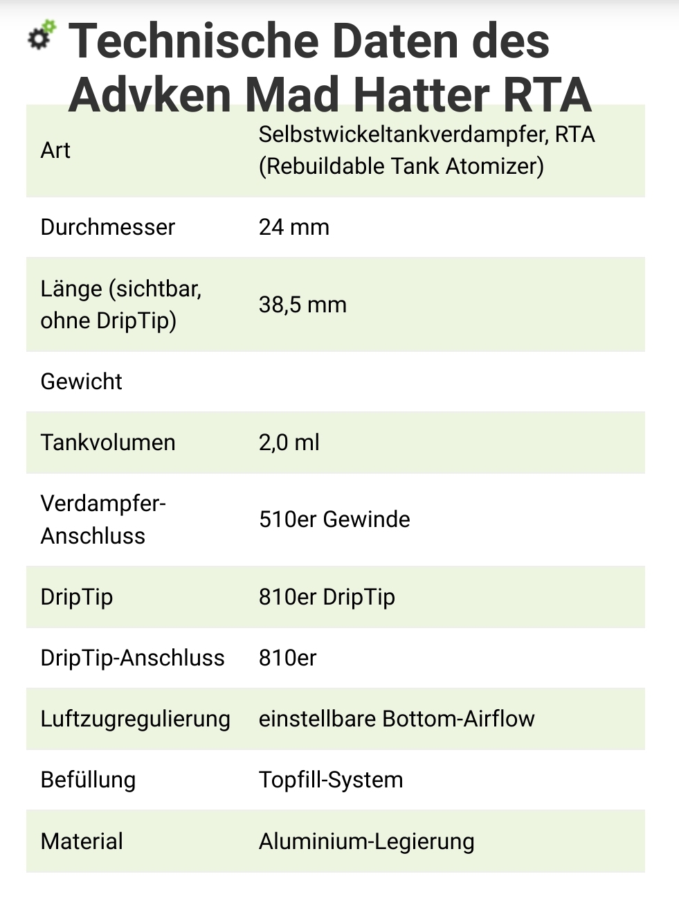 Anfängerfreundlich ist der Mad Hatter in meinen Augen nicht, da man die Innensechskantschrauben komplett entfernen muss um eine Coil positionieren zu können. Auch die Coilenden müssen möglichst plan abgeschnitten werden damit man den Tank überhaupt aufschrauben kann.
