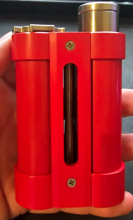 Ansonsten halte ich gerade fast zärtlich meinen stahlharten Schaft in der Hand, spüre die darin schlummernde Kraft und drücke jetzt schon etwas länger in regelmäßiger Art und Weise die berührungsempfinglichste Stelle, woraufhin sich die gespeicherte Flüssigkeit immer wieder neu explosionsartig seinen Weg nach draußen sucht. Klingt komisch? Aber es beschreibt genau das, was ich gerade mache - den Feuerstaster am Sidekick Mod betätigen und dampfen.