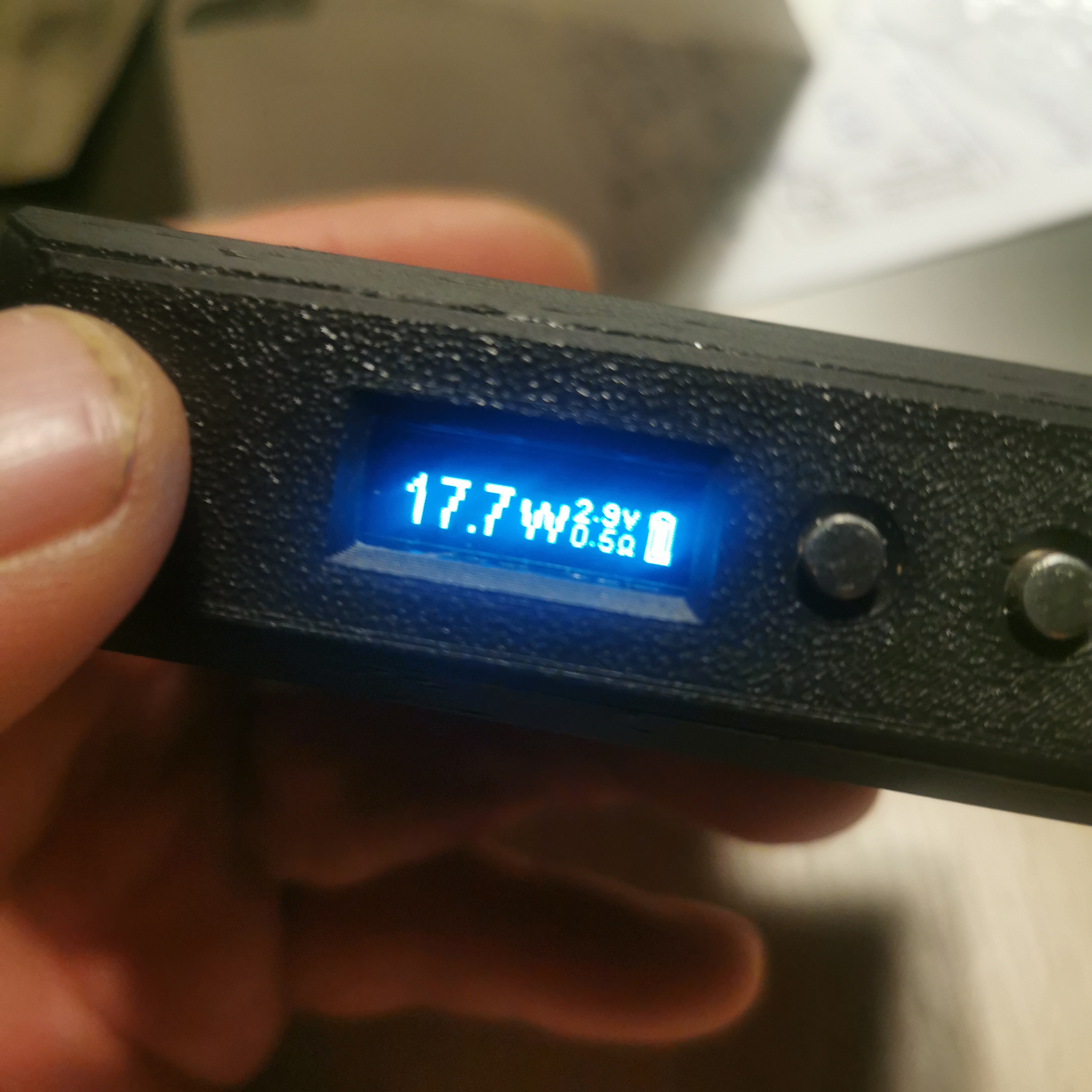 Original war dort eine Carbon Optik Folie verbaut. Diese habe ich aber gegen die Resin Optik Applikationen der Gunmetal getauscht, finde ich schöner. Das Board war ein neues DNA75C das jetzt ca. 1500 Puffs weg hat.