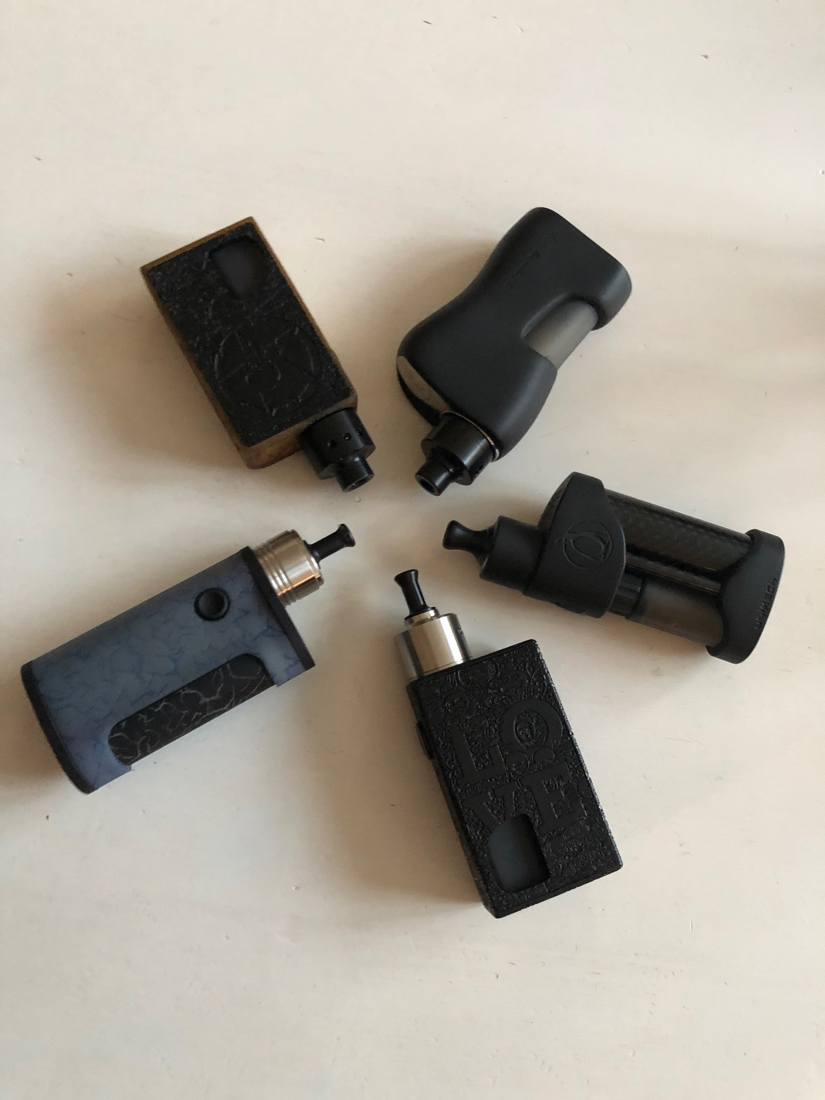 Alex mein Name, 35 Jahre, aus dem Niemands- bzw. Oldenburger Münsterland. Meine erste Dampfe habe ich mir im Sommer 2016 zugelegt. Seit Januar 2018 habe ich mit dem Thema Kippen im Großen und Ganzen abgeschlossen, die letzte hatte ich vor ca. einem Jahr in der Hand. Das ist ungefähr auch der Zeitpunkt an dem ich mir das erste Mal neue Hardware gegönnt habe. Und dann nahm das "Unheil" seinen Lauf... erstmalig einen Zeh ins DL-Wasser gehalten, dann angefangen selbst zuwickeln, kurz darauf folgte der erster Squonker, dann kam eine mechanisch-krawallig Tröpflerphase. Die ersten höherpreisigen RTAs zogen auch irgendwann ein. RDAs fand ich immer noch geil, aber tröpfeln war mir doch zu stressig. Logische Konsequenz: eine vernünftige Squonkarmee musste her. Das ist auch der aktuelle Stand. Zu 70% wird hier mit MTL RDAs mechanisch gesquonkt, zu 20% MTL RTAs genutzt und die letzten 10% gehören den größeren Wolken.