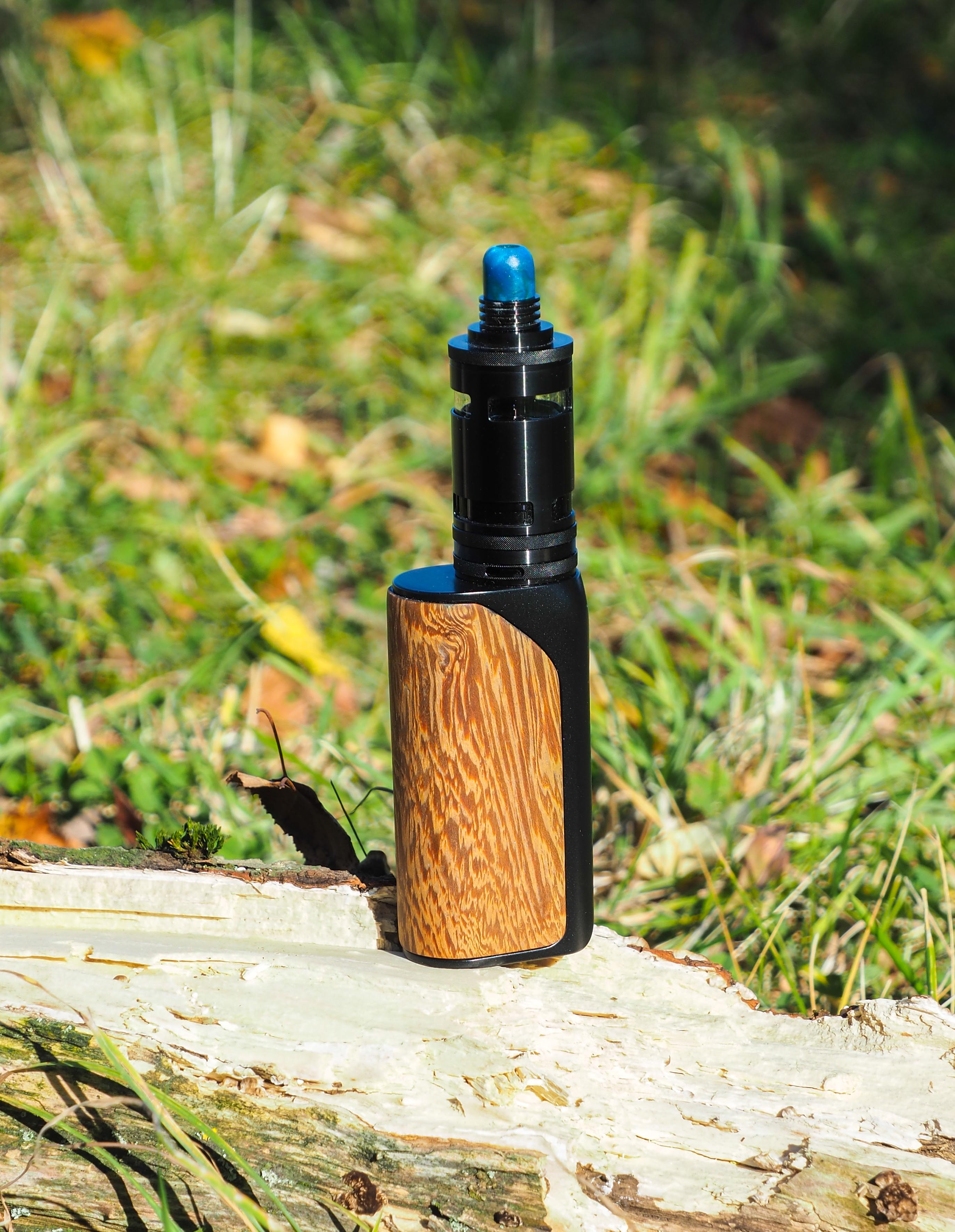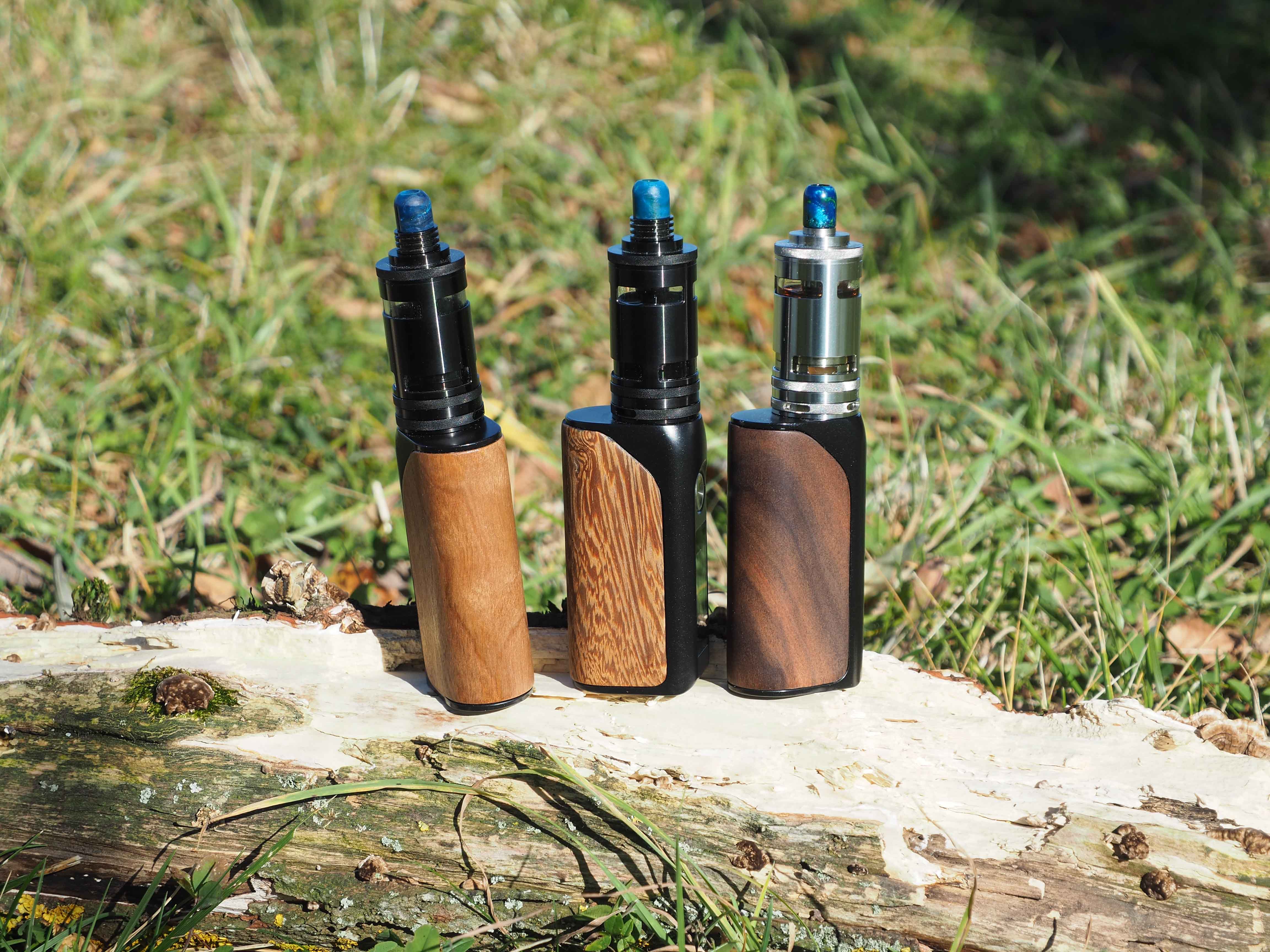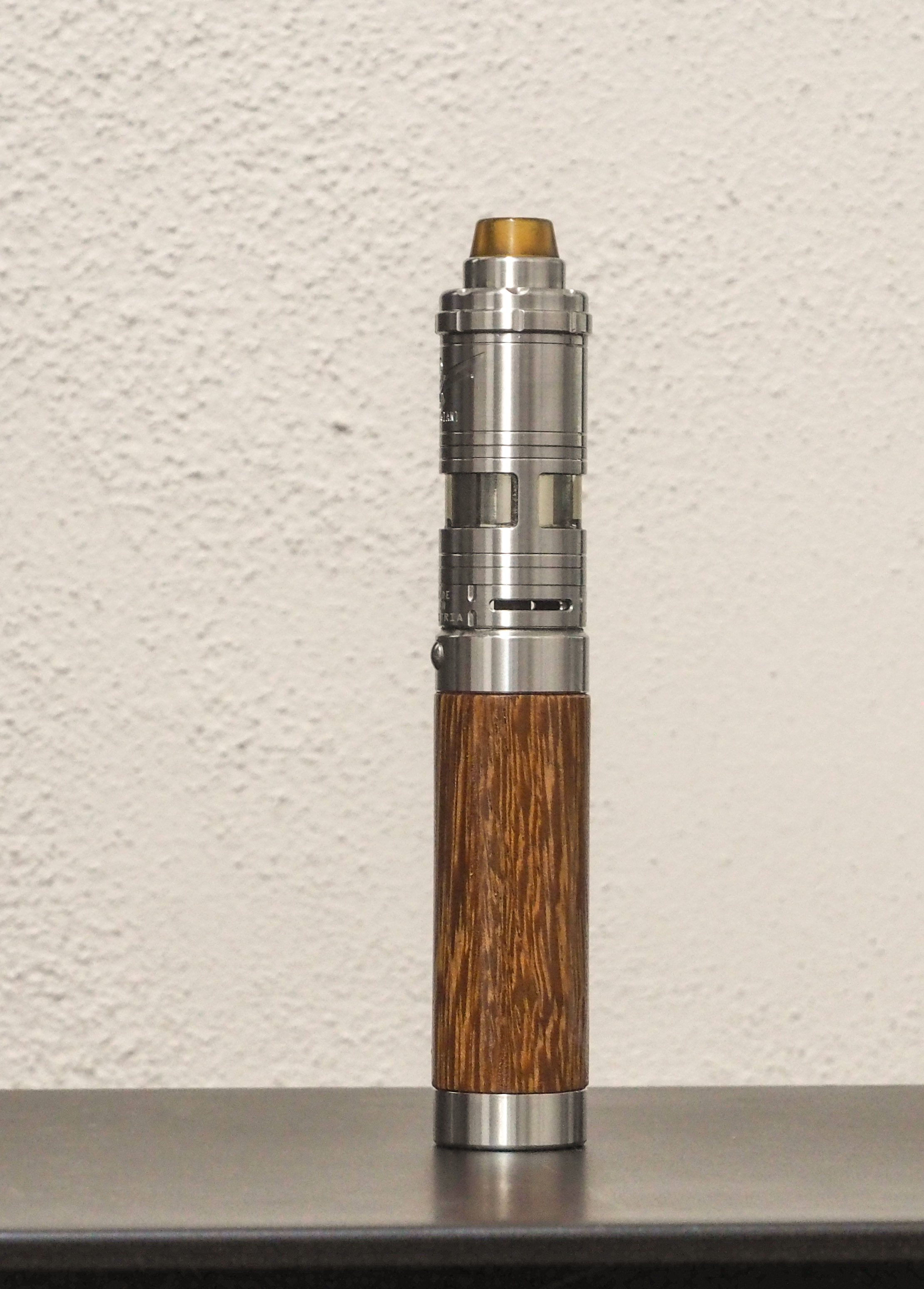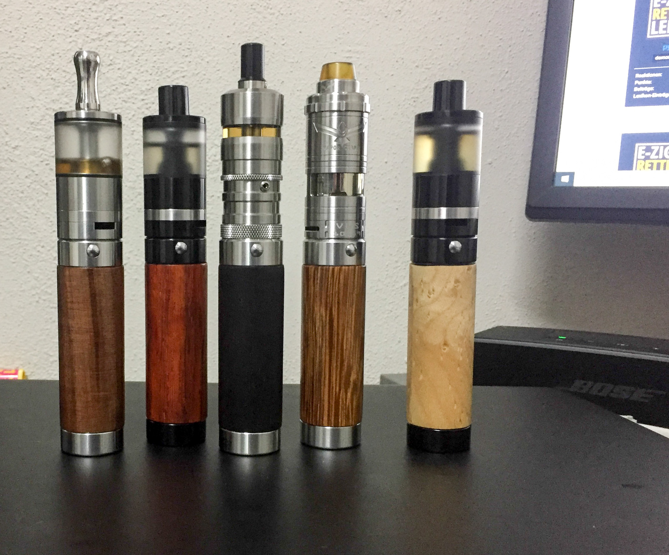 Das erste ist eine Ijust Tube bei der ich das Innenleben entfernt habe, danach furniert. Die ist mit dem doppelseitigen Klebeband gemacht. Es funktioniert zwar, ist aber der erste Versuch gewesen und nicht wirklich gut.
