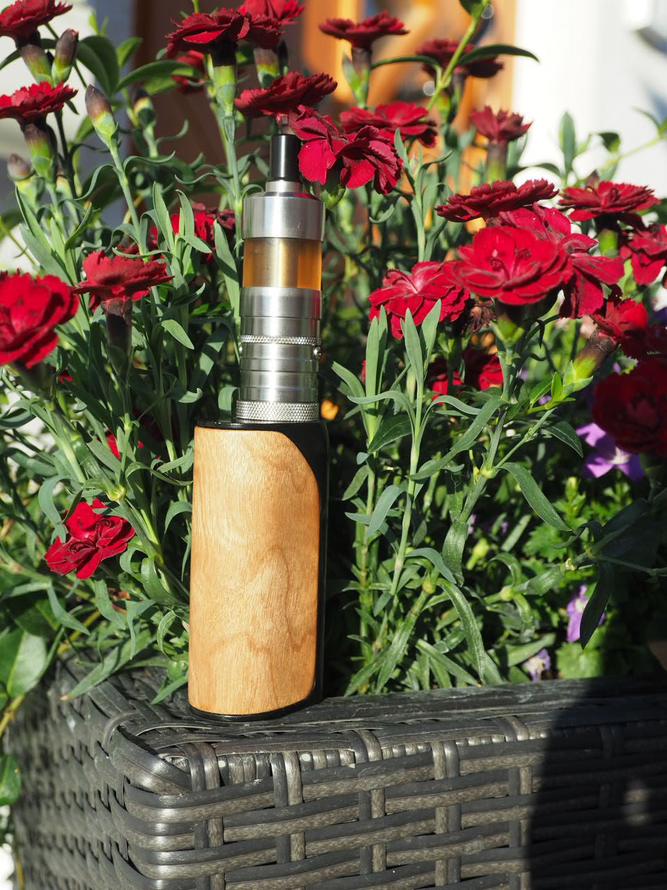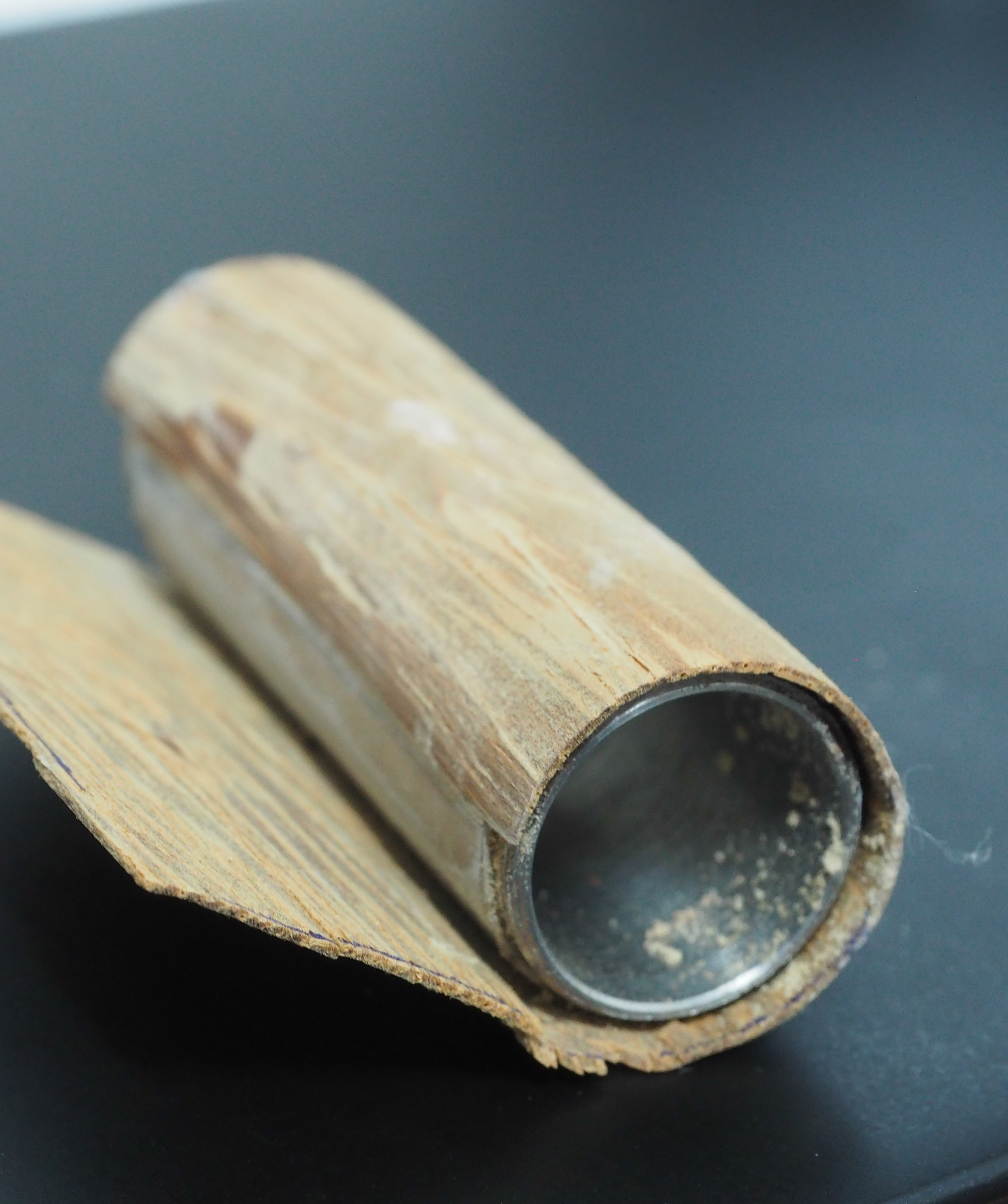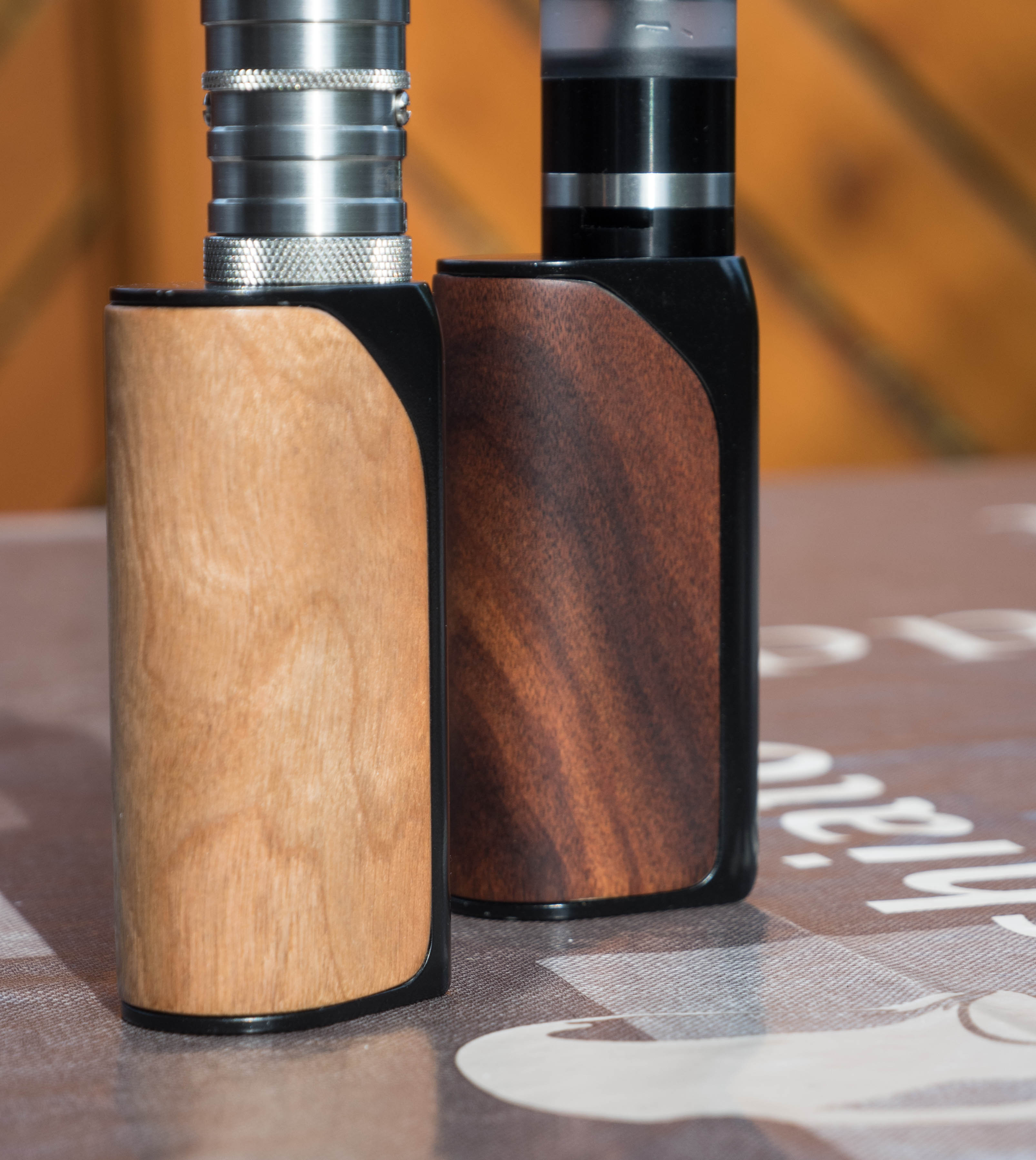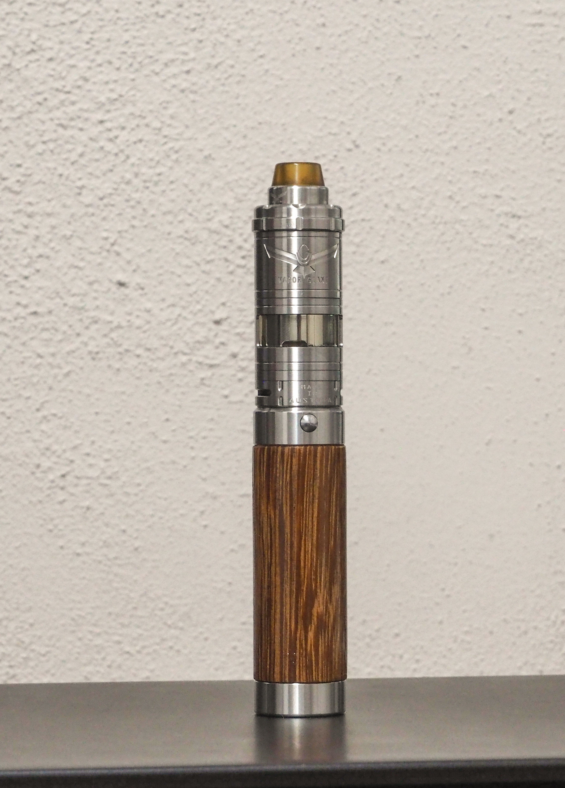 Das erste ist eine Ijust Tube bei der ich das Innenleben entfernt habe, danach furniert. Die ist mit dem doppelseitigen Klebeband gemacht. Es funktioniert zwar, ist aber der erste Versuch gewesen und nicht wirklich gut.