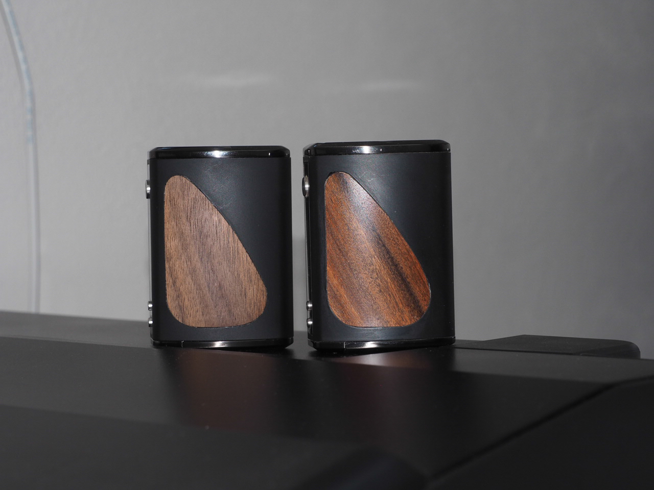 Die beiden nächsten sind Asmodus Collossal bei denen ich die Akkudeckel furniert habe - die habe ich bis heute täglich in Gebrauch (seit Juni 19) und es sind noch keinerlei Abnutzungen oder Beschädigungen sichbar. Ok das Holz ist leicht nachgedungkelt.