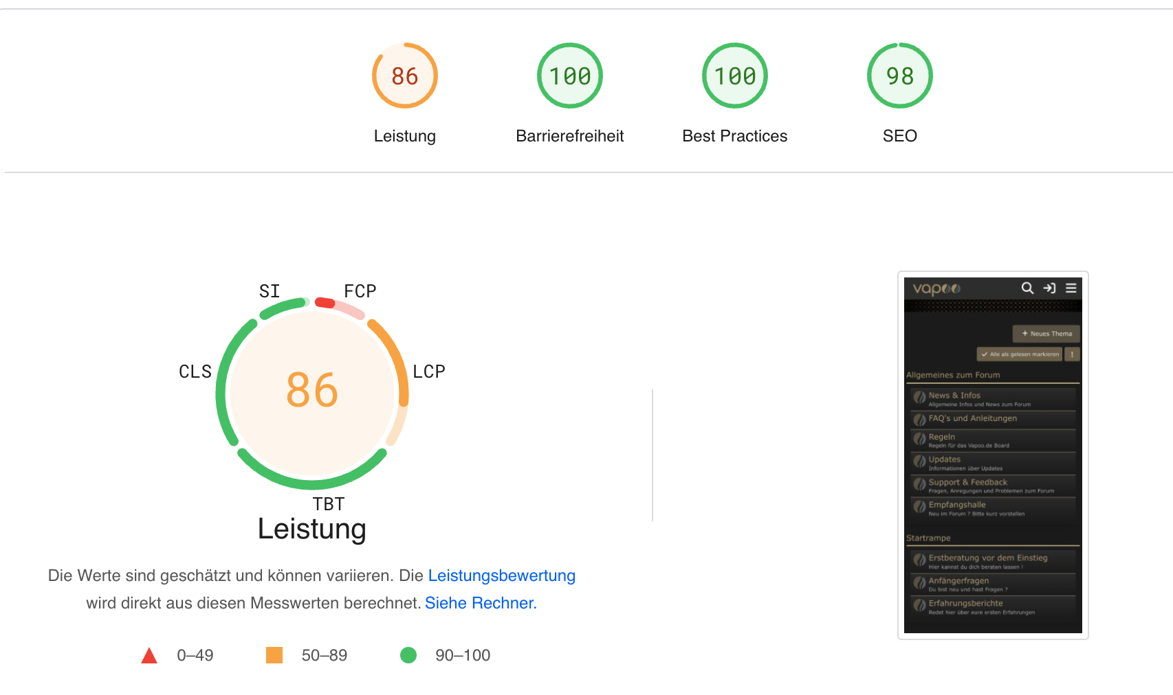 Der Fokus wurde zunächst auf die Google Optimierung gelegt, was den Seitenspeed angeht, haben wir es auf dem Desktop komplett ausgereizt,