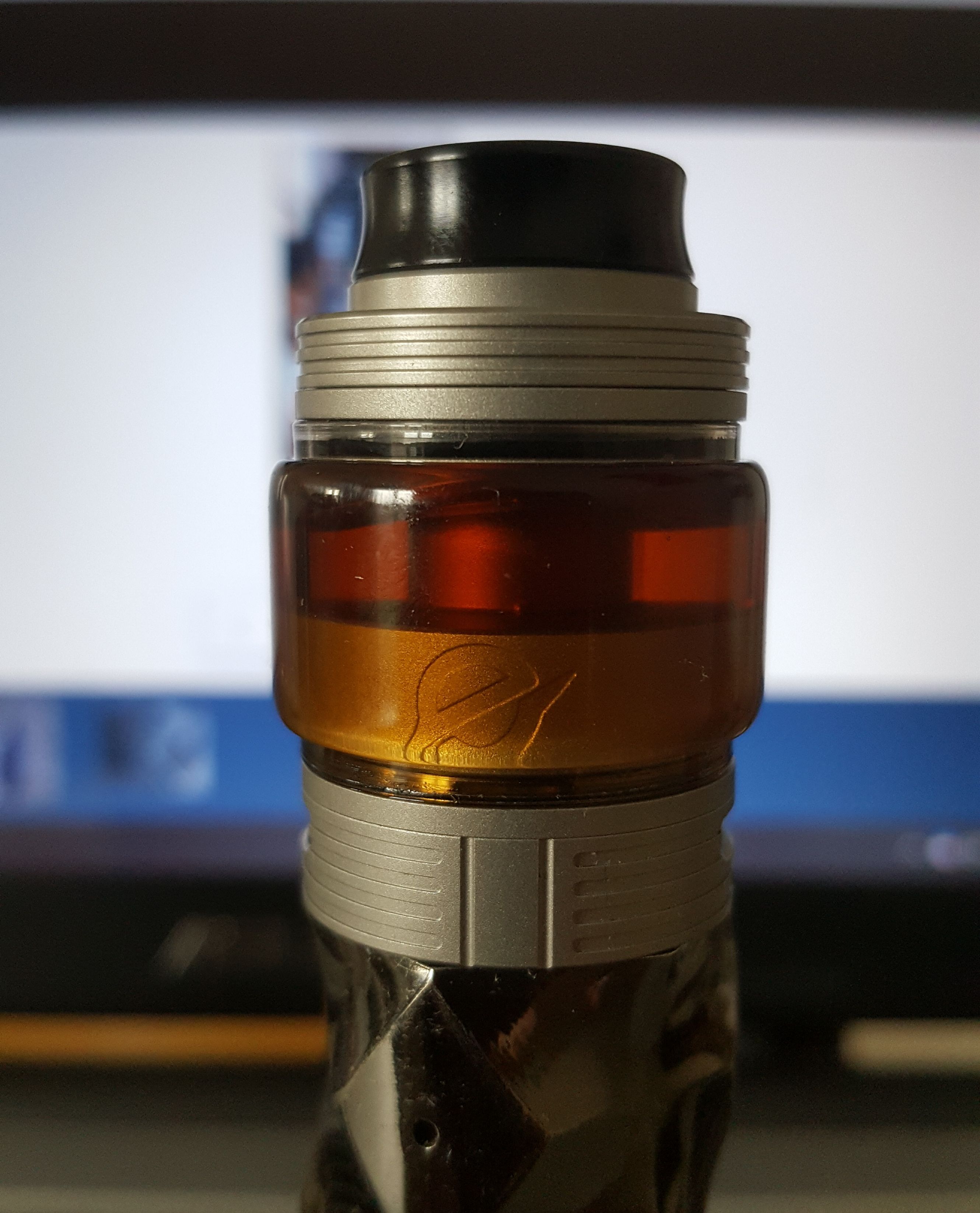 Da mich der Equalizer gerade auf einem mech mod sehr überzeugt hat, kam noch ein weiterer in "Silver matte", der natürlich ebenfalls direkt auf Bubbleglas umgebaut wurde. Eine Alien mit Ni80/Ni90/Ni80 + SSl landet bei 0,2 Ohm bei 3mm ID und zaubert nun ebenfalls leckeren Geschmack mit "Moonies" von dampfen18