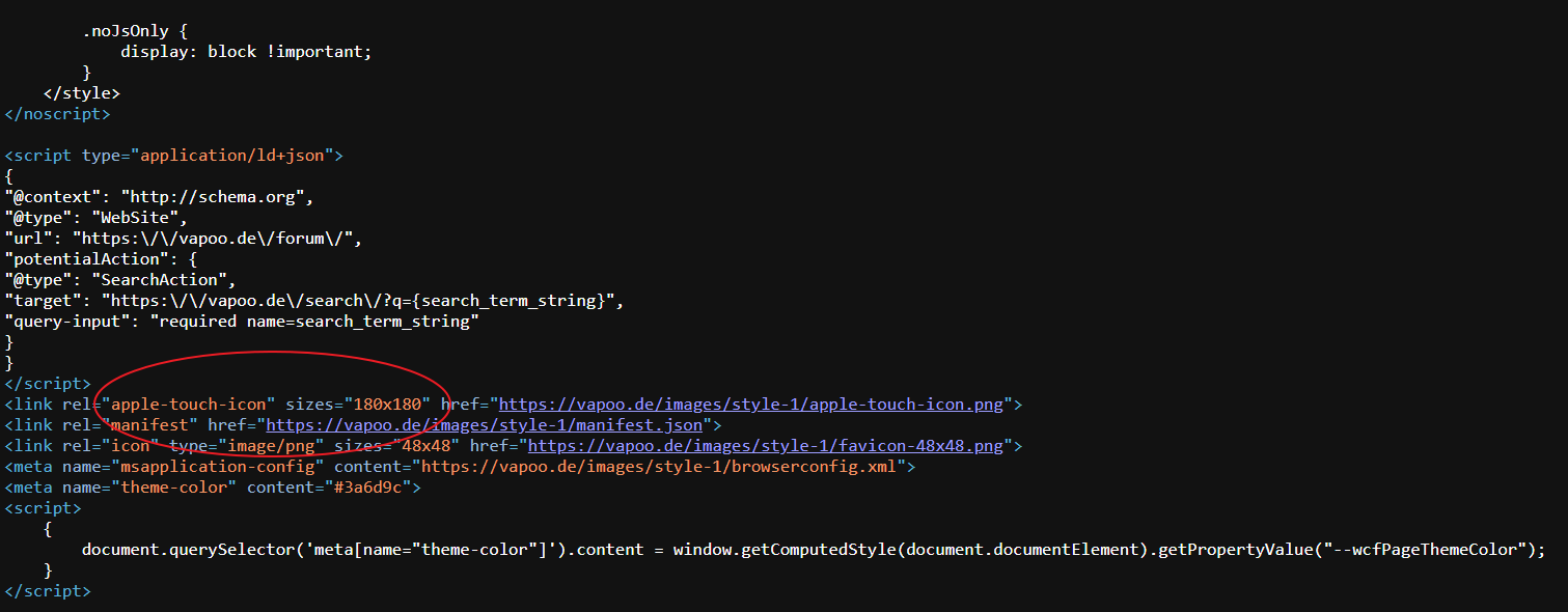 Falsche Spur, das "apple-touch-icon" ist ja nur das vapoo-Logo.
