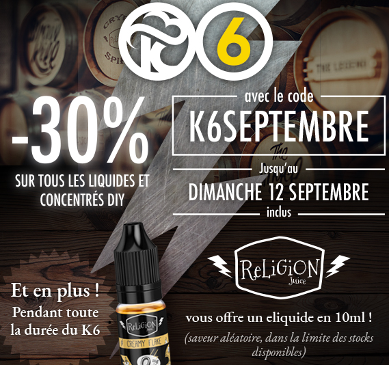 Noch bis Sonntag 12. September -30% auf alle DIY E-Liquids und Aromen mit dem Code K6SEPTEMBRE