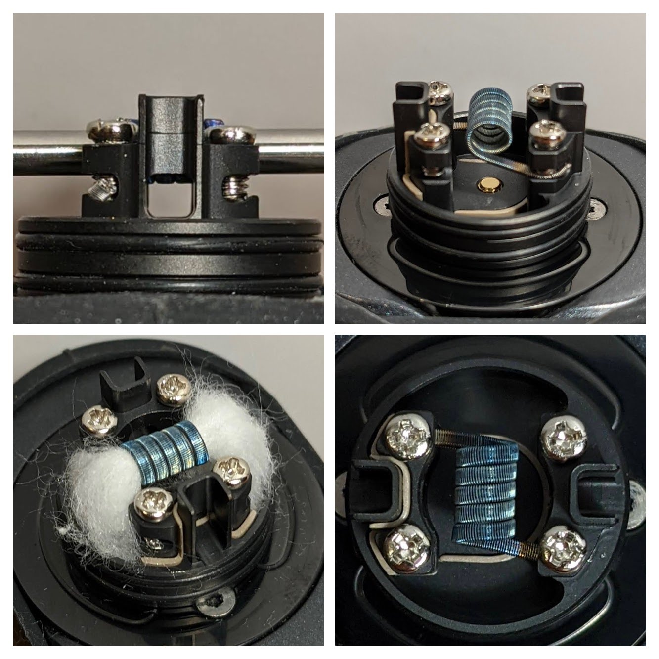 Verbaut habe ich die mitgelieferte Coil und mit Fiber N'Cotton bestückt. Der ID der Coil beträgt 3 mm und kommt bei 0,32 Ohm raus.
