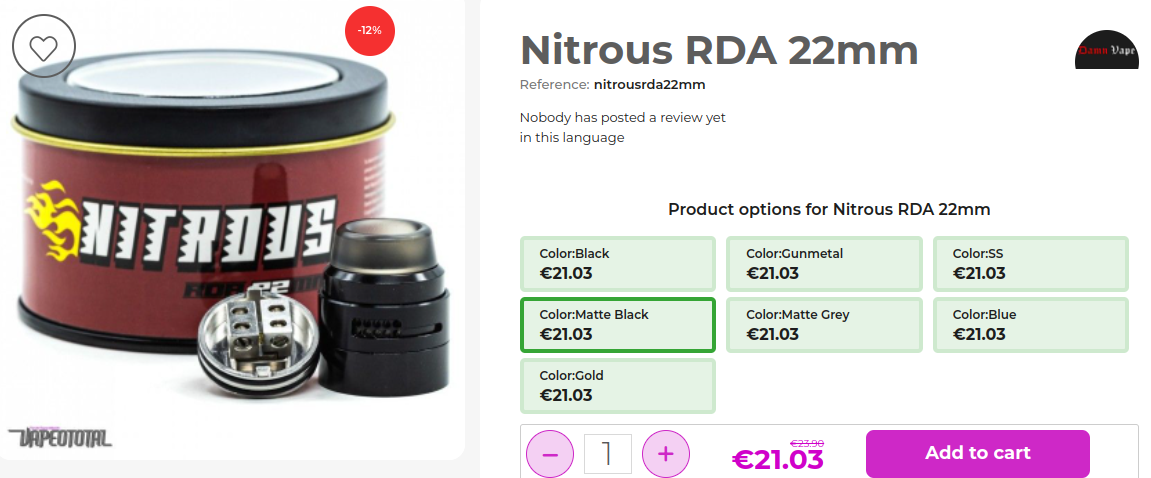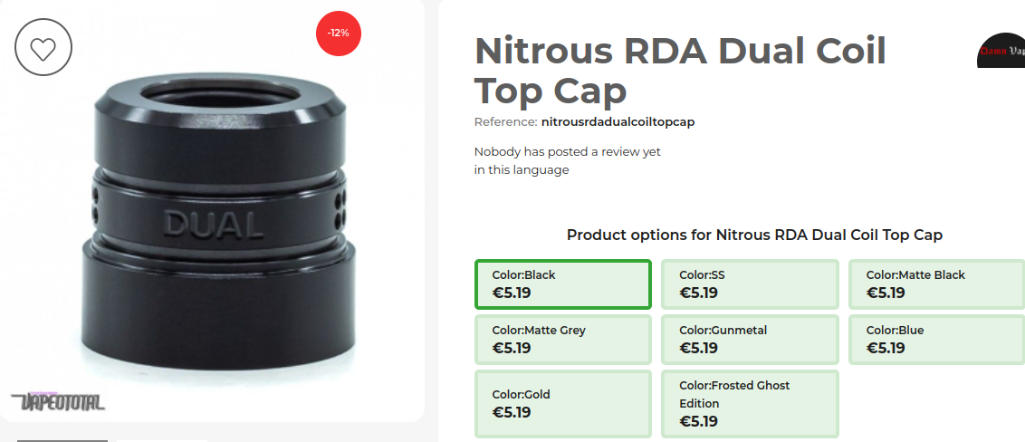 In Spanien wird der Nitrous RDA jetzt als Single Coil ohne Dual Coil Top Cap verkauft.