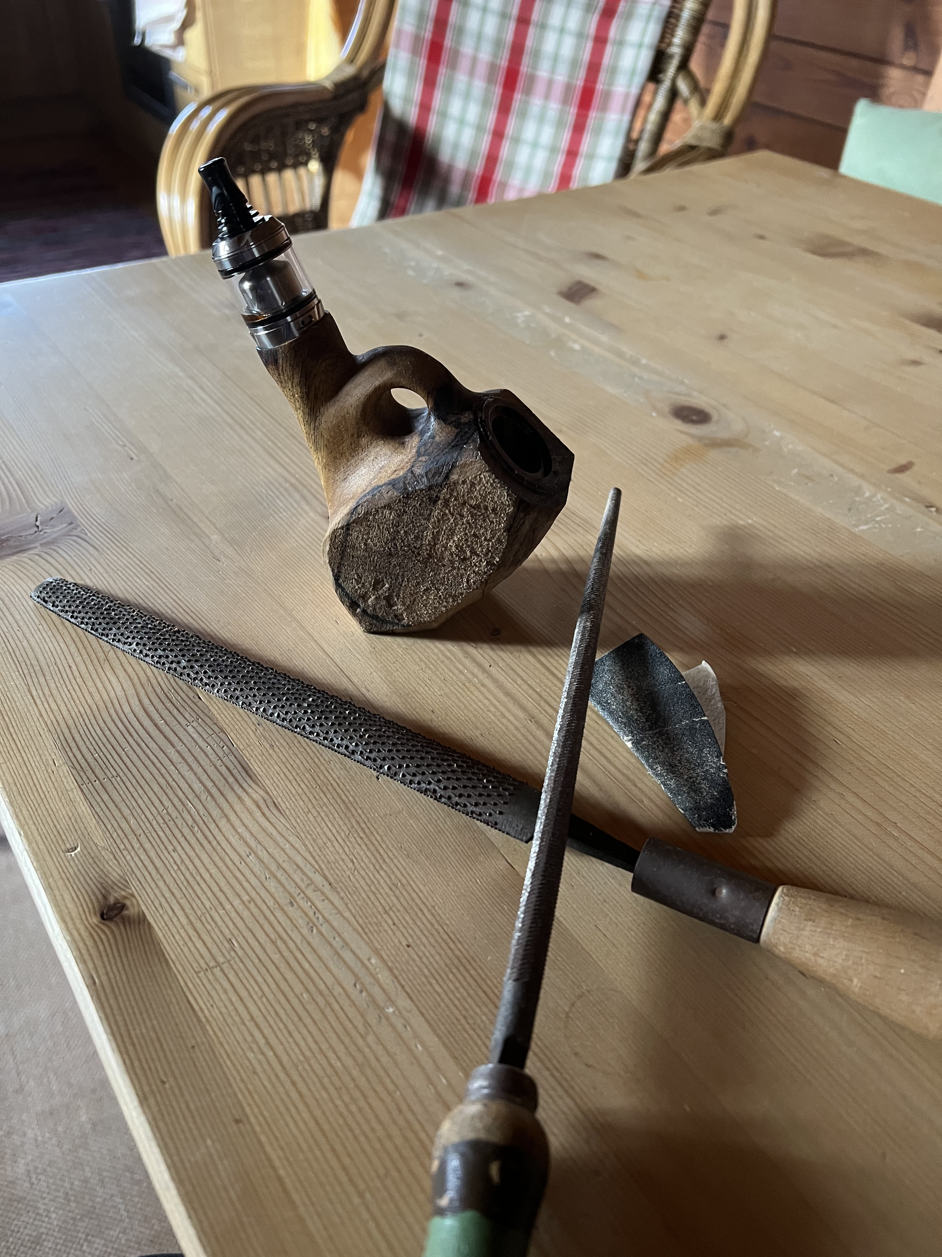 Als Werkzeug dienen nur die Raspel und zwei Rundfeilen, eine grobe und eine etwas feinere.