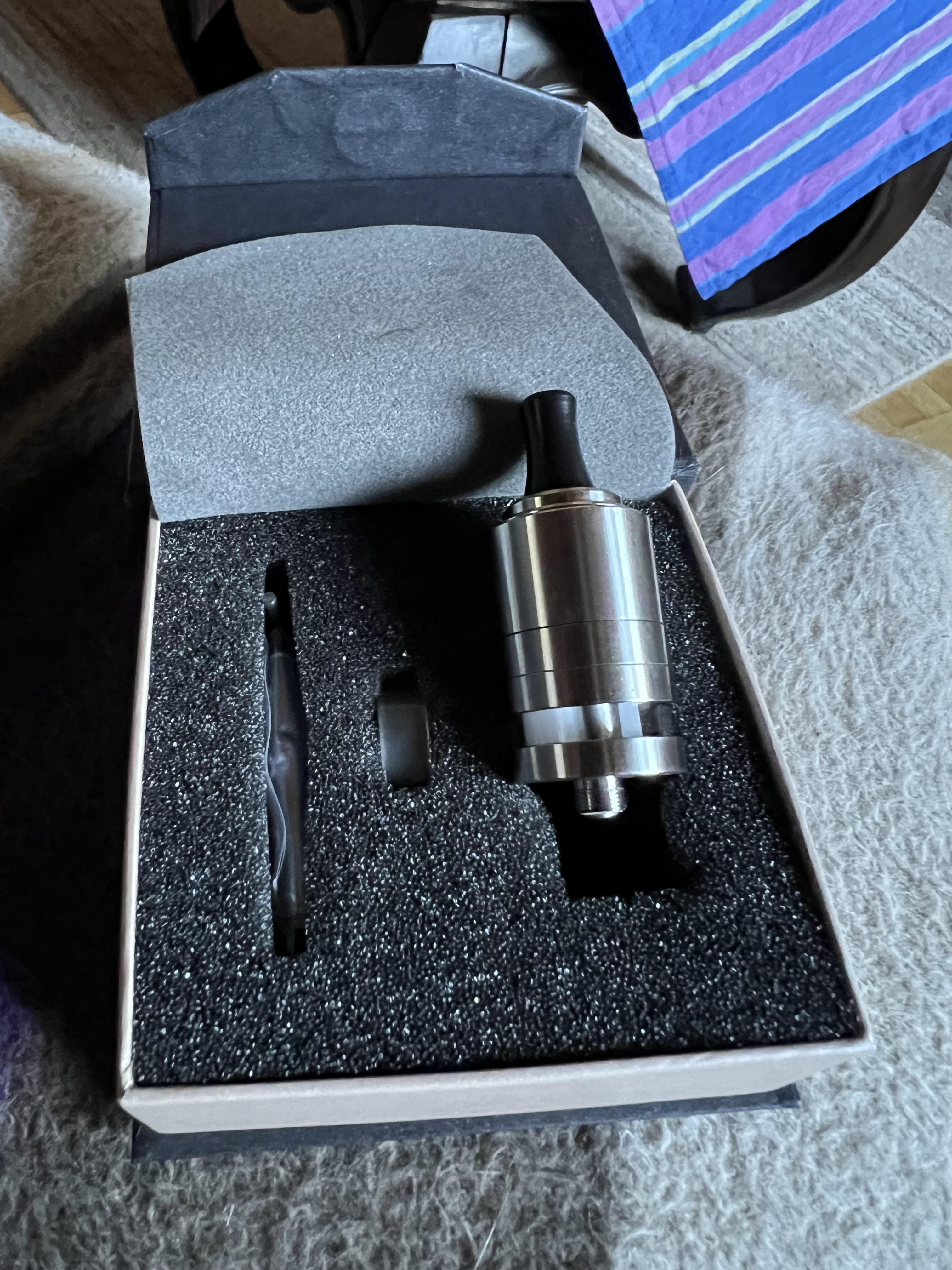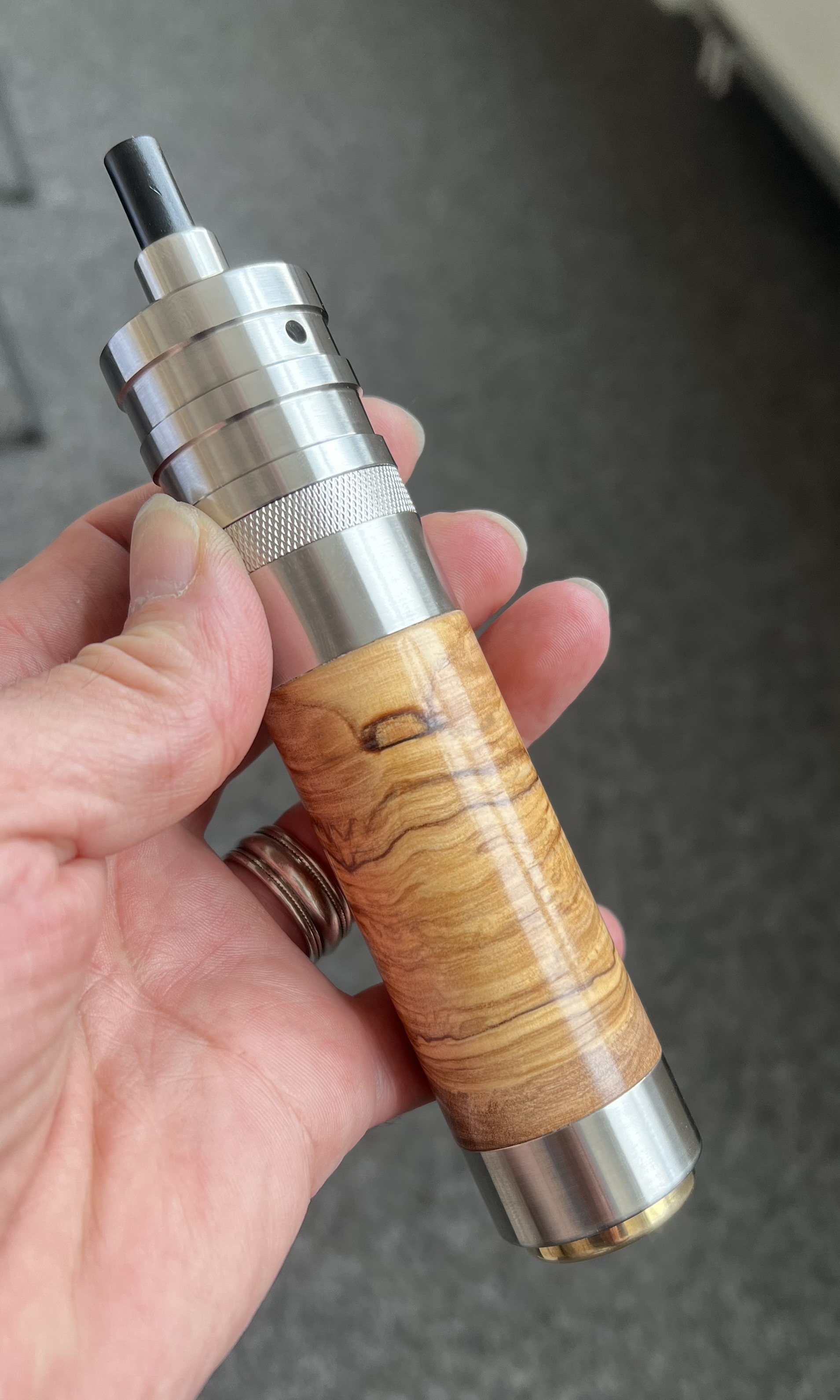 Es kam wie es kommen musste, was ein hübscher Tröpfler ist, benötigt natürlich auch noch ein passendes Driptip. Ein Nebelfee DT habe ich da mit dem Olivenholz ausgestattet.