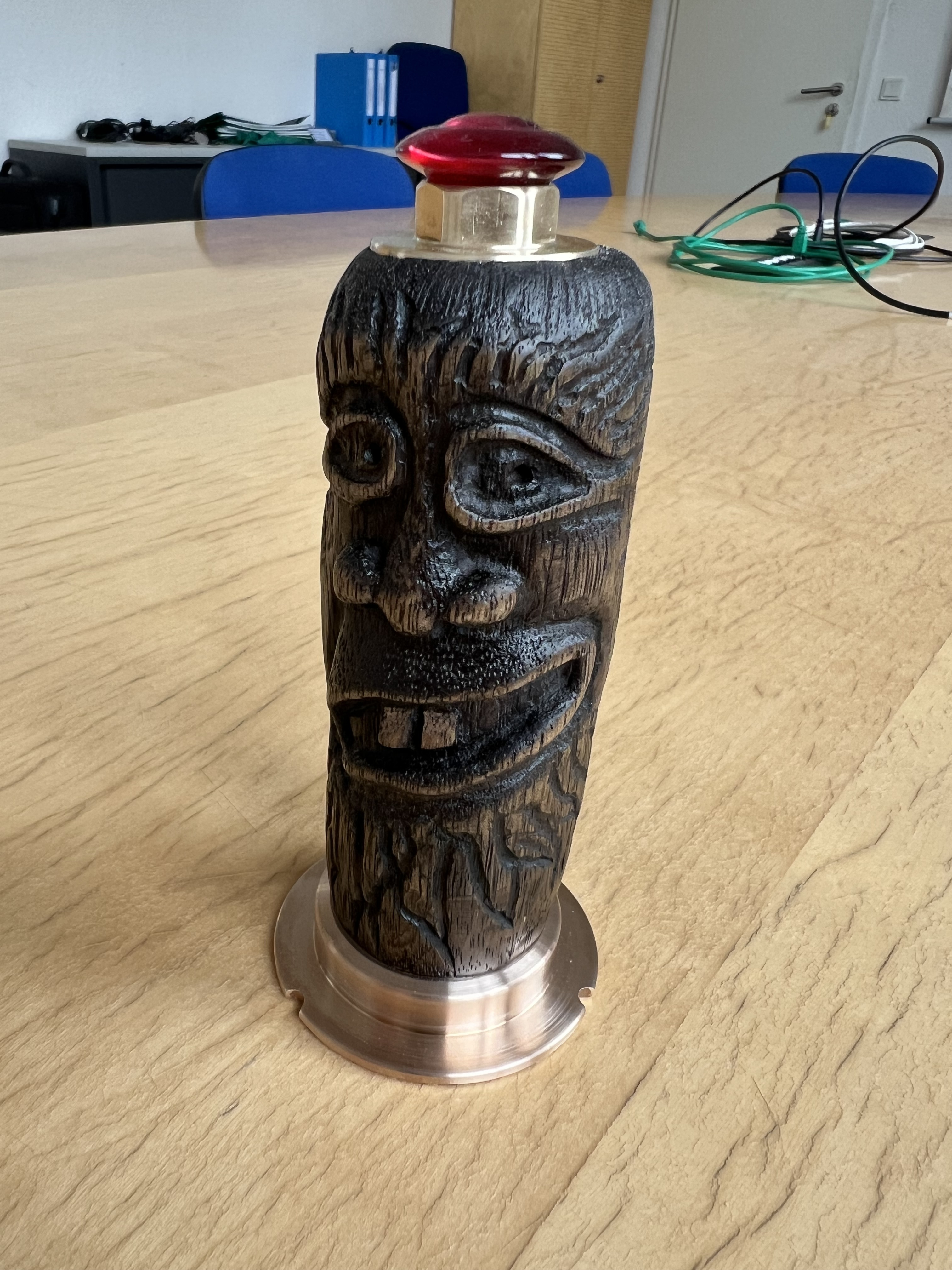 😀 Ah nein, ganz so zerfurcht bin ich trotz meines Alters noch nicht. Das ist der eher klägliche Versuch im woodcarving. Naja zumindest erkennt man ein Gesicht.