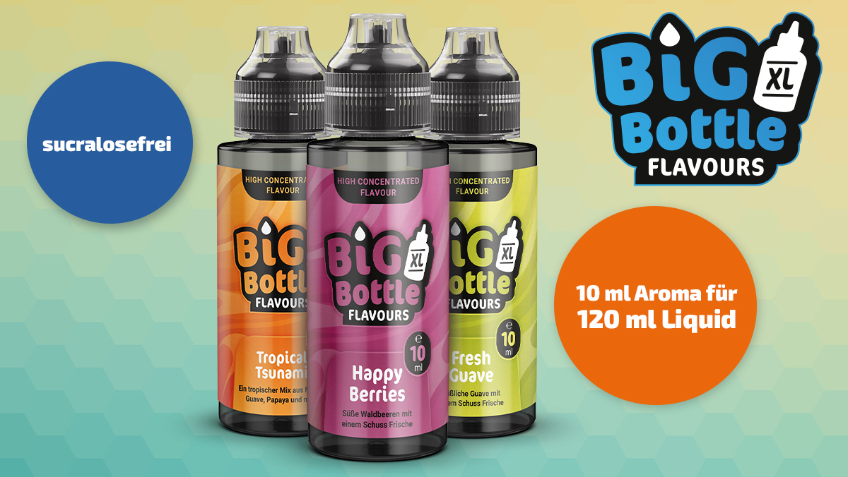 zum Preis ab nur 8,95 EUR sind unsere Big Bottle Longfills ein Top-Deal, denn das hochkonzentrierte Aroma ergibt 120 ml Liquid! Leckere Tastes wie Calipter oder Fresh Guave erwarten Dich. Jetzt im Shop entdecken und bestellen!