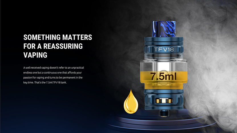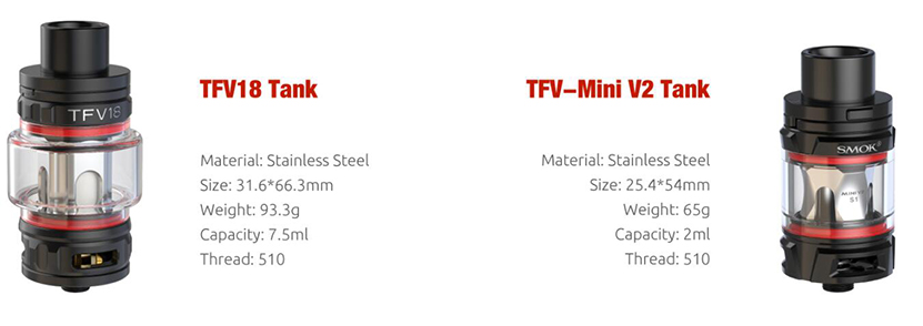 Abwechslung bietet auch die Farbauswahl, so ist das Kit in fünf verschiedenen Farbvarianten erhältlich. Dabei hat SMOK bei einer bestimmten Variante eine Chance verschenkt. Den im Kit enthalten TFV18 Verdampfer gibt es auch in einer wunderschönen Variante in dunklem Goldton gehalten. Warum also SMOK bei der Farbvariante "Prism Gold" dennoch zum schwarzen Pendant gegriffen hat und sich die Verdampfer generell zu einem großen Teil nur durch andersfarbige Dichtungsringe unterscheiden, ist äußerst schade.
