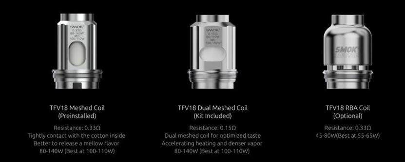 allerdings auch klar definiert: DL mit möglichst dicken Wolken. Mit dicken... dicken Wolken. Ein großartiges Geschmackswunder oder gar keine Konkurrenz für Selbstwickler braucht man hingegen nicht erwarten. Der Geschmack ist für einen Fertigcoiler dennoch recht ordentlich. Diesen würde ich knapp hinter Uwell Crown IV und Geekvape Zeus Subohm einordnen. In dieser Größenordnung mehr überzeugt haben mich lediglich die Fertigcoils von Vaporesso. Dass es allerdings augenscheinlich mehr um dicke Wolken geht, zeigen auch die verfügbaren Coils für den TFV18. SMOK setzt hierbei auf deren dicke V18 Coils, welche in zwei Varianten angeboten werden. Einmal als Single Mesh und einmal als Dual Mesh. Die Dual Mesh Coils bieten hierbei einen etwas restriktiveren Zug und liefern meiner Meinung nach einen etwas besseren, differenzierteren Geschmack als die Singlecoil Variante. In einer ganz anderen Liga allerdings spielt die separat erhältliche RBA von Wotofo, die ebenfalls bereits seit einiger Zeit zu SMOK bzw. dem Mutterkonzern gehören.