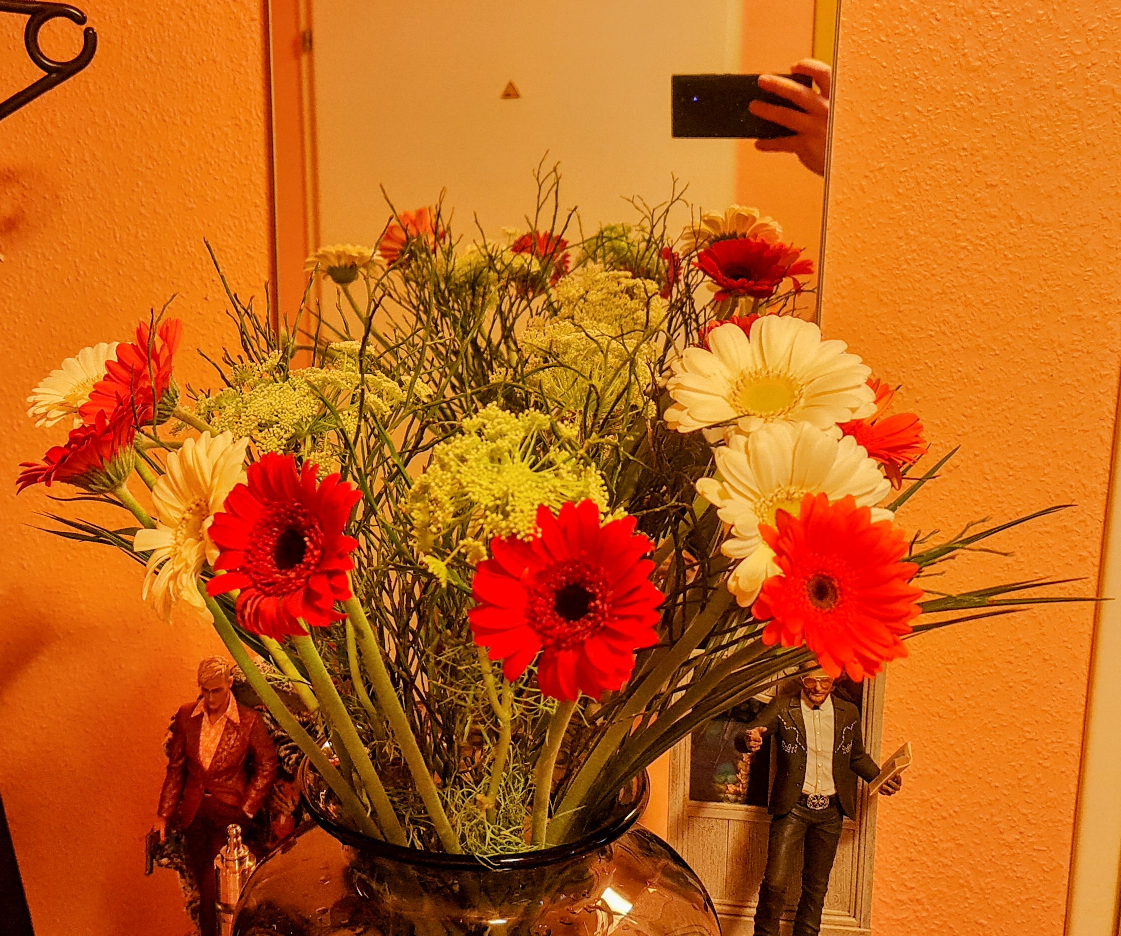 Meinem Liebling Desideria vom Einkaufen frische Blümchen mitgebracht.