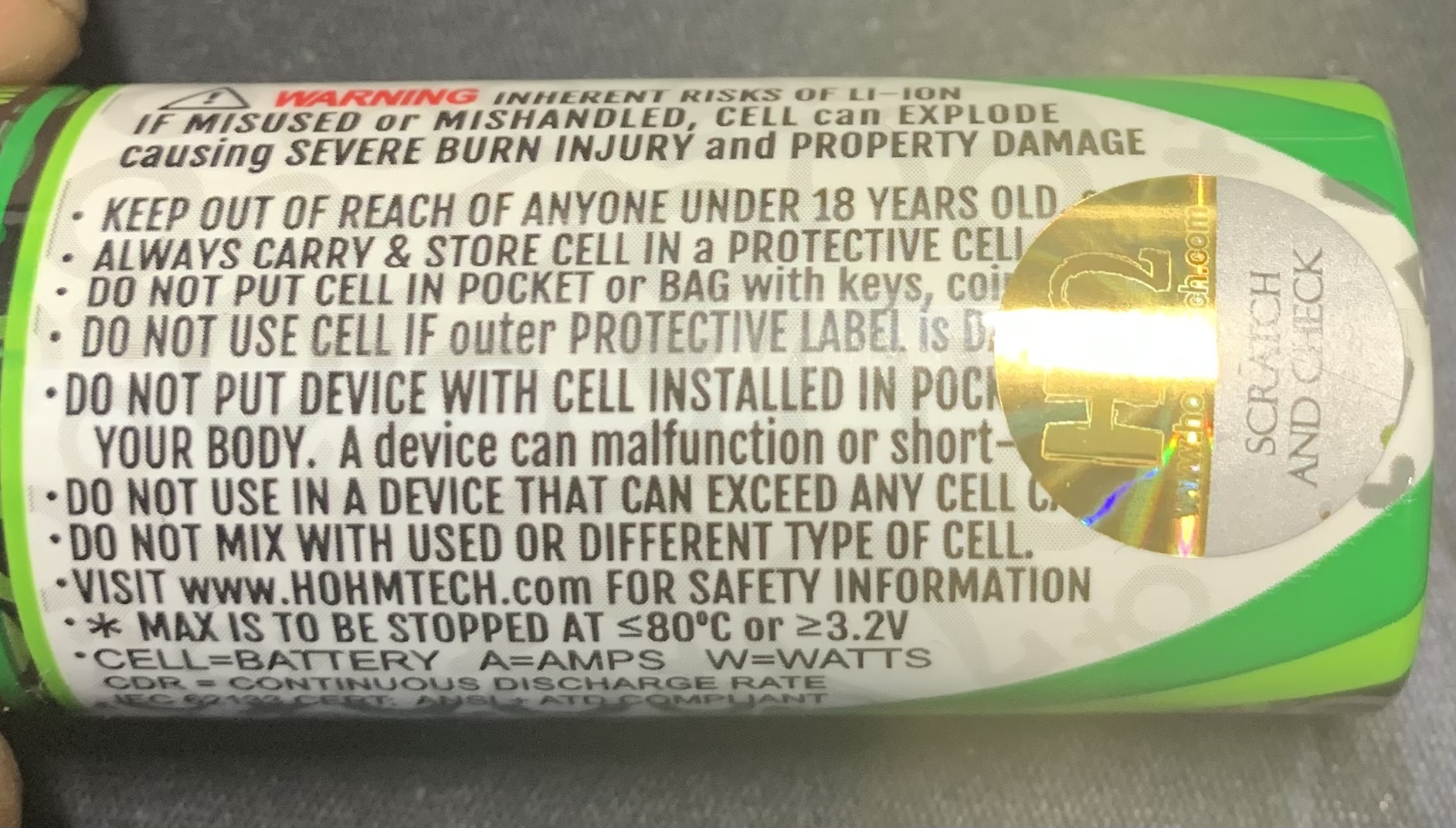 Weitere Sicherheitshinweise finden sich ausführlich sowohl auf der Zelle, als auch der Verpackung. ![]()
