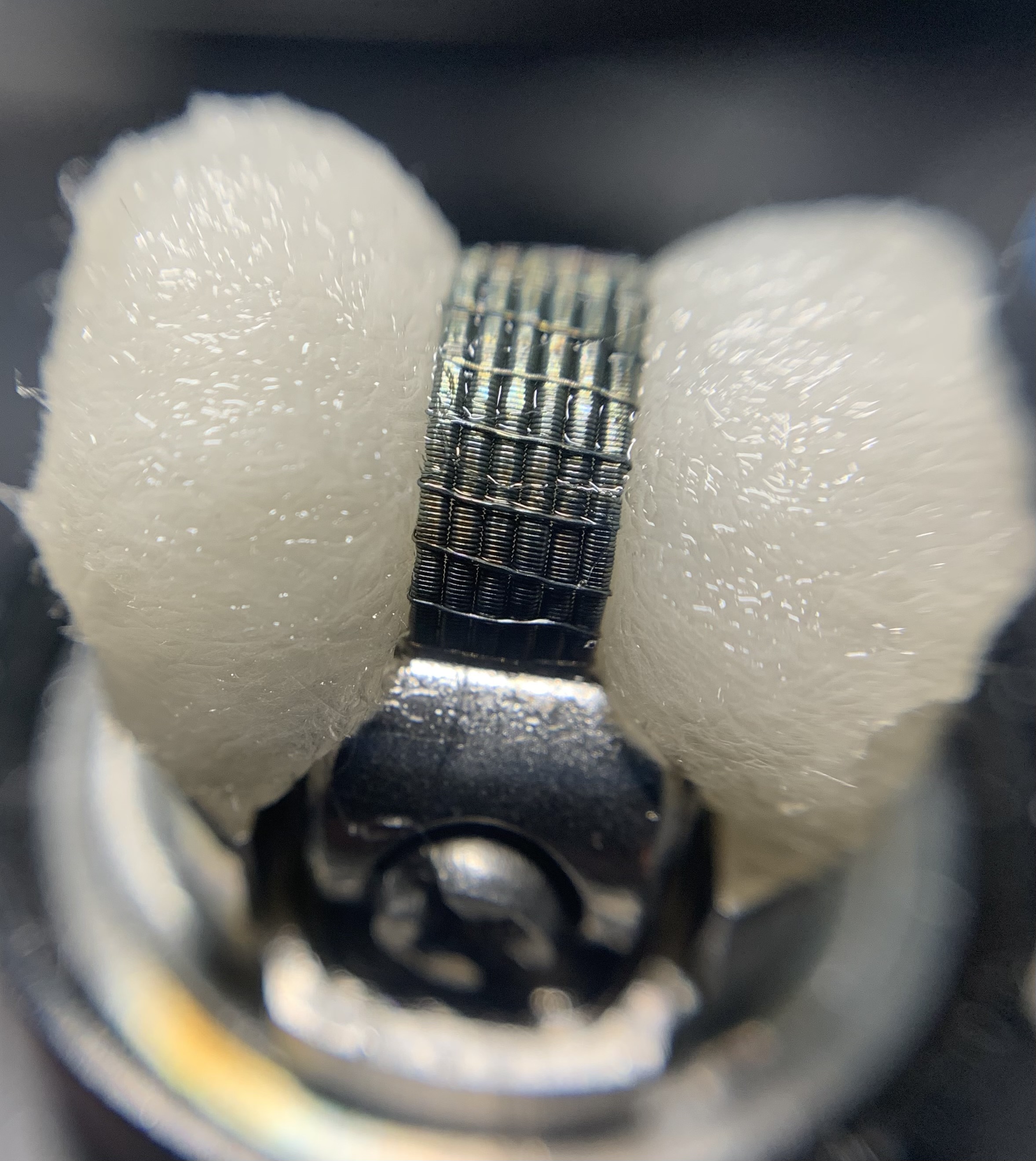 Überraschend einfach zu wickeln. Ich hab einfach nach Gefühl die Watte reingeklatsch und einen spaced 0,36mm Ni80 9-Winder mit 2mm ID reingeschmissen. Alles abgeschnitten und abgeknipst. Anschließend hab ich ihn befüllt und eingedampft. Ich find ihn tatsächlich nicht schlecht. Nur sehr sanfter Throathit, aber ab und zu mag ich das sehr, muss ja nicht immer feV-artig reinscheppern. Geschmack ist auch echt ok.