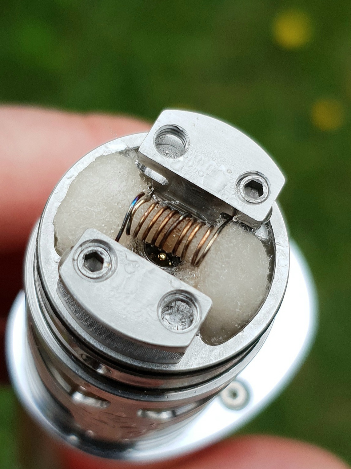 Die Brunhilde MtL gekauft, ausgepackt und gewickelt. Verbaut ist eine einfache Coil mit 9 Windungen auf 3mm aus 316L GA28. Das ganze ohne Airflowschraube bei 15 Watt mit komplett offener Airflow. Von meinen ganzen rDL Versuchen der bisher beste.
