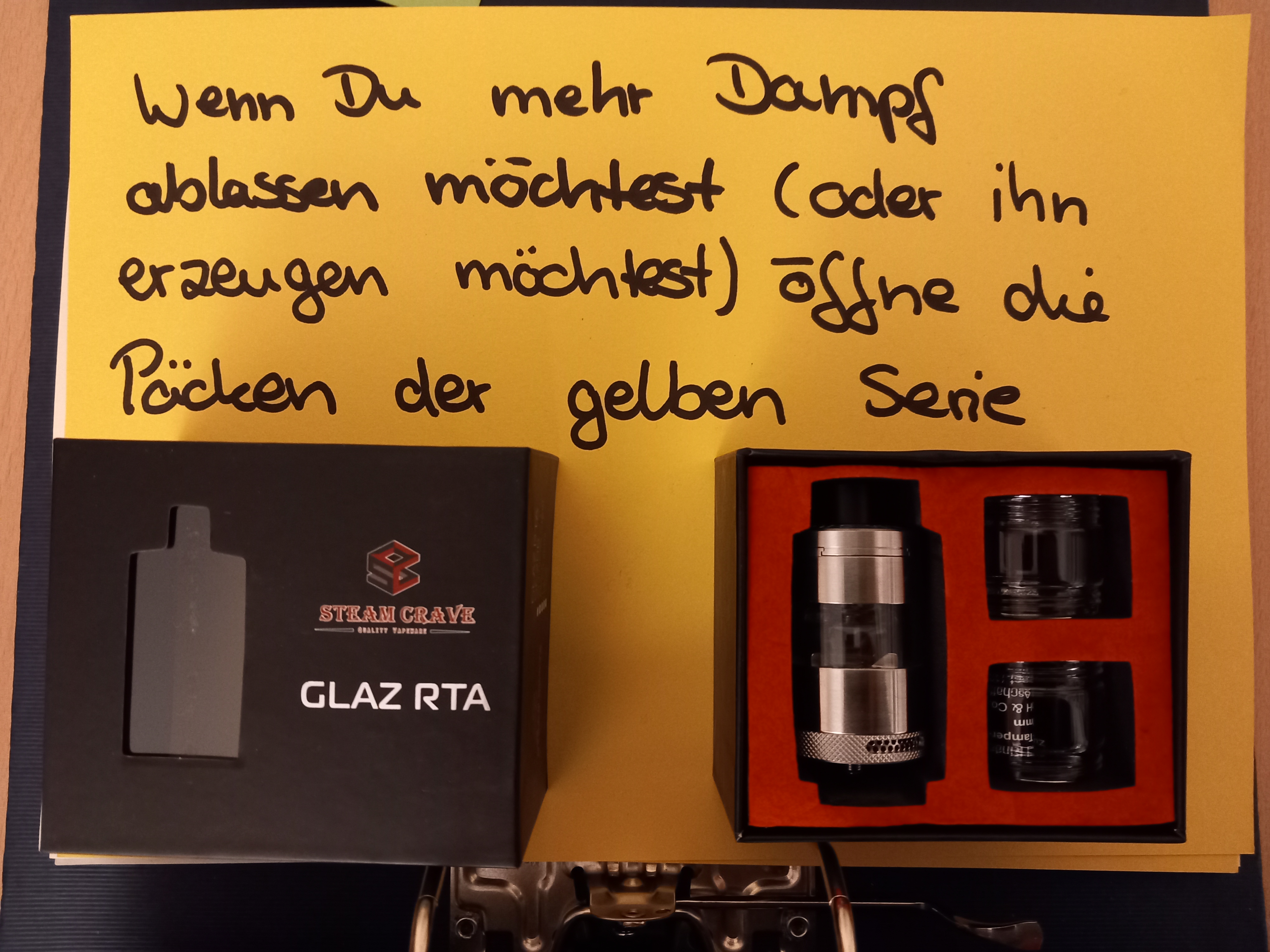 Da ich aber kein Ladegerät für meine 21700er hier habe ( Im Moment alles über USB-C ) Habe ich mir noch einen schwarzen GAUR"! bringen lassen und dann dort den RATH RDA drauf gepackt.