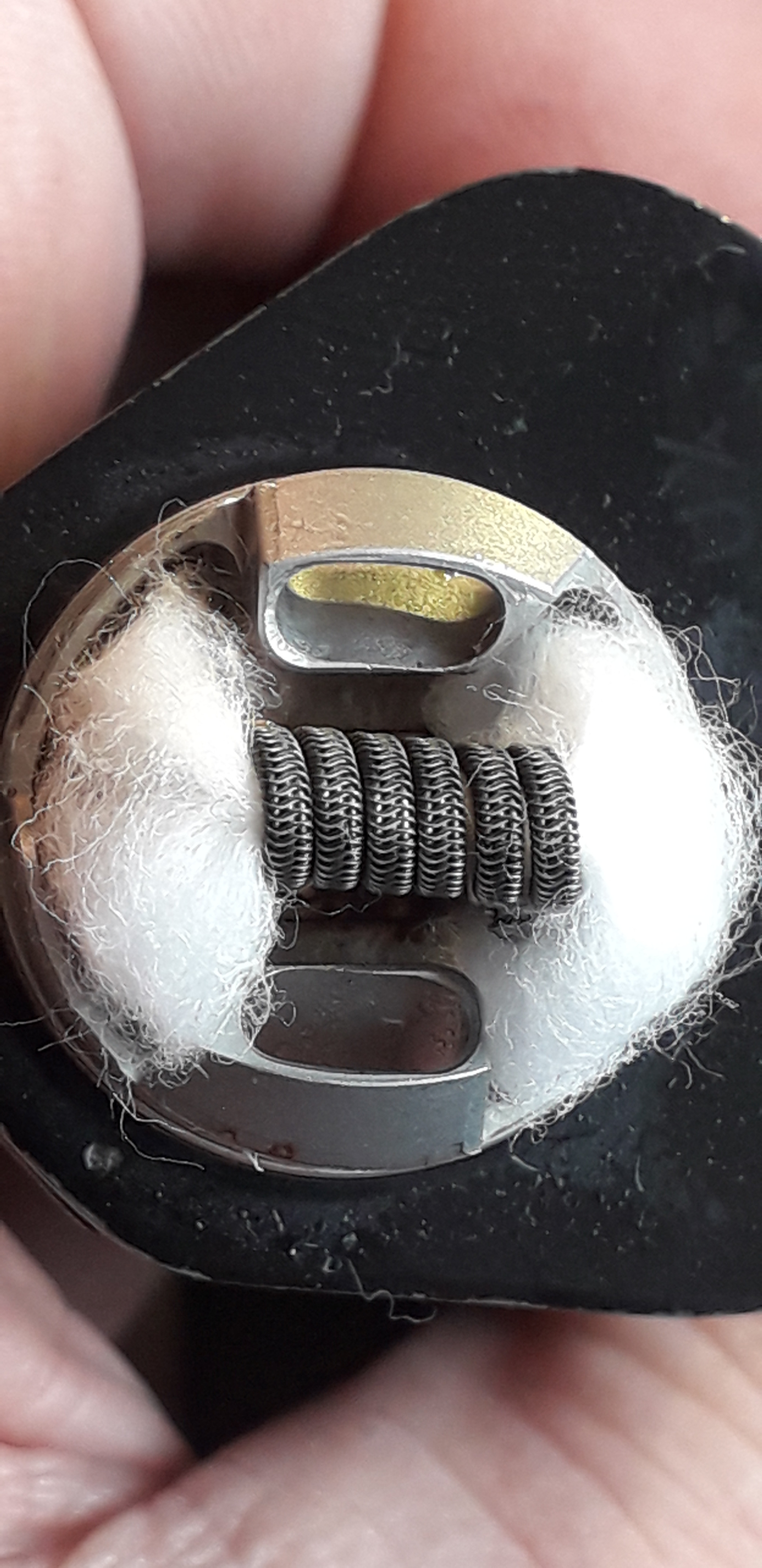 Gleich mal meine Standard-Coil ( 0,32er Ni80 + 0,10er V2A - Mantel ) also ne Fused Clapton rein gezimmert .