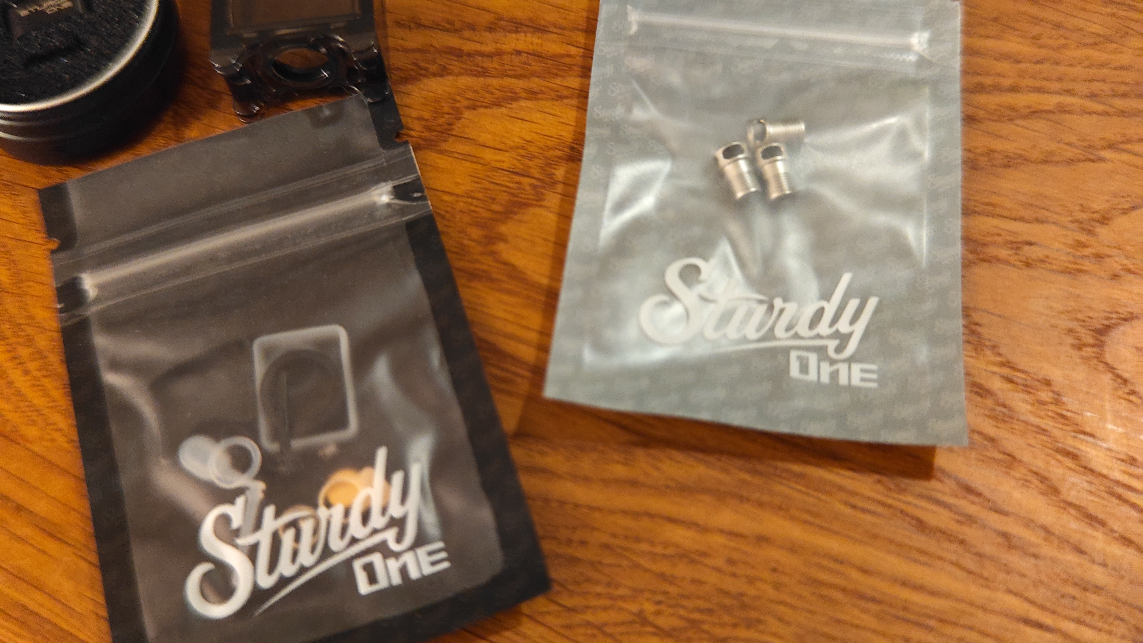 2. Sturdy One schwarz, OneUp Kit schwarz, extra Smoke Dottank, Extra Ersatzteile, Extra Pins, Atmizoo Snailtank Smoke.