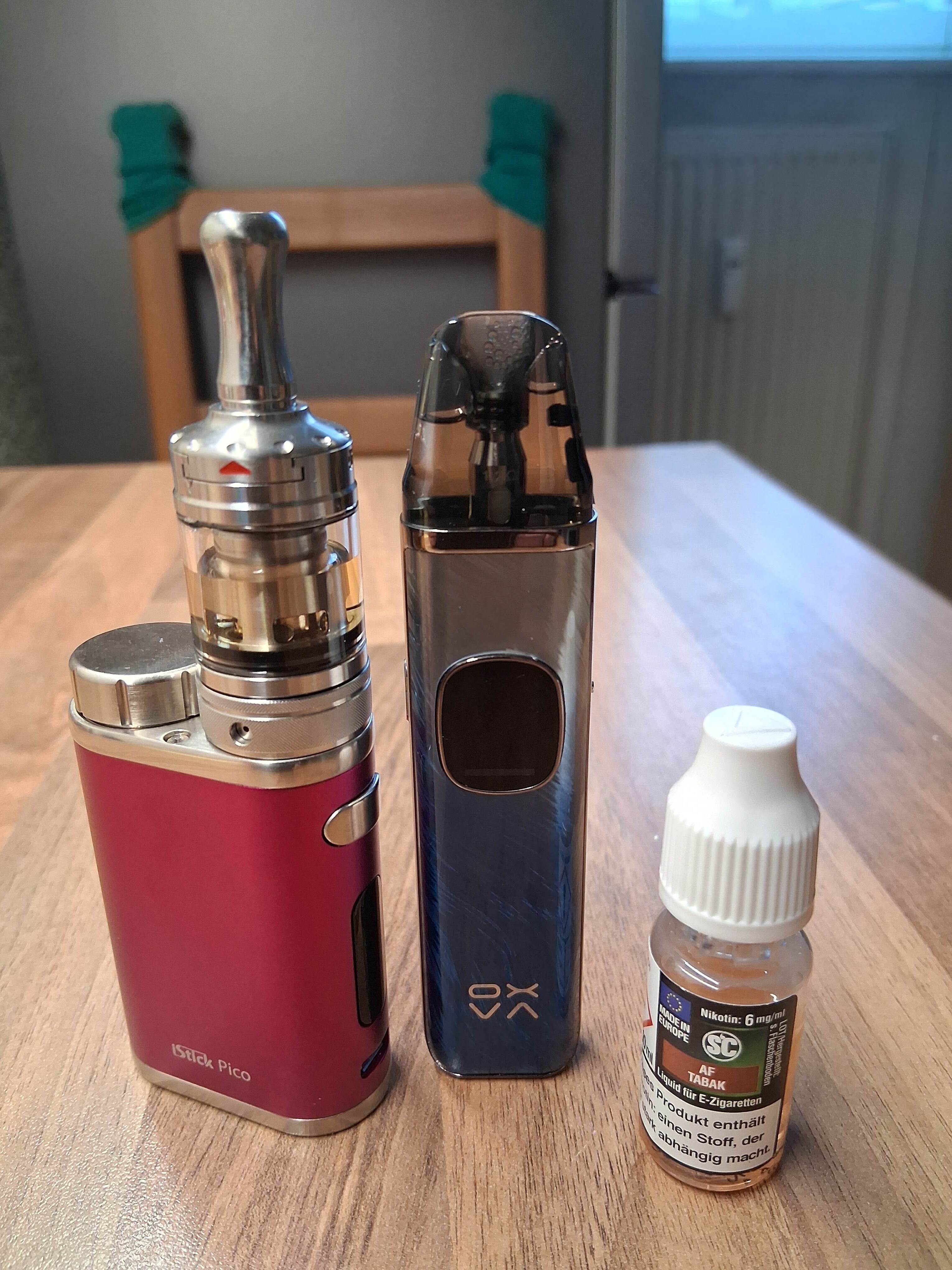 Sie dampft immer noch begeistert, hurra! Und wie sie sagt: „Lieber das als Kippen.“ Vom Krankenhaus aus habe ich ihr einen Istick Pico 25 in Blau-Weiß bestellt, ihr Wunschgerät. Heute kam der Akkuträger und meine Frau rief aufgeregt an: „Es schmeckt total verbrannt!“