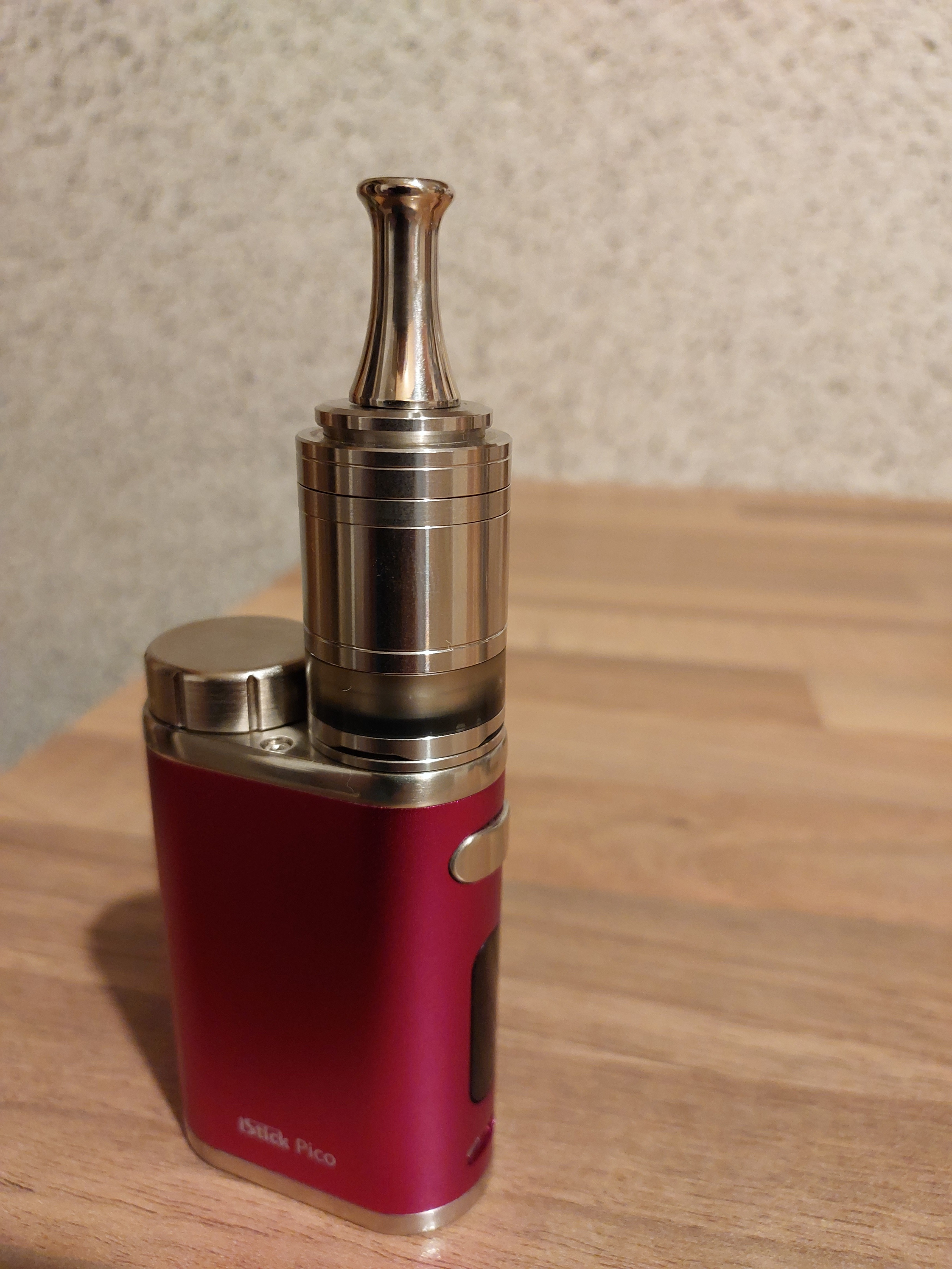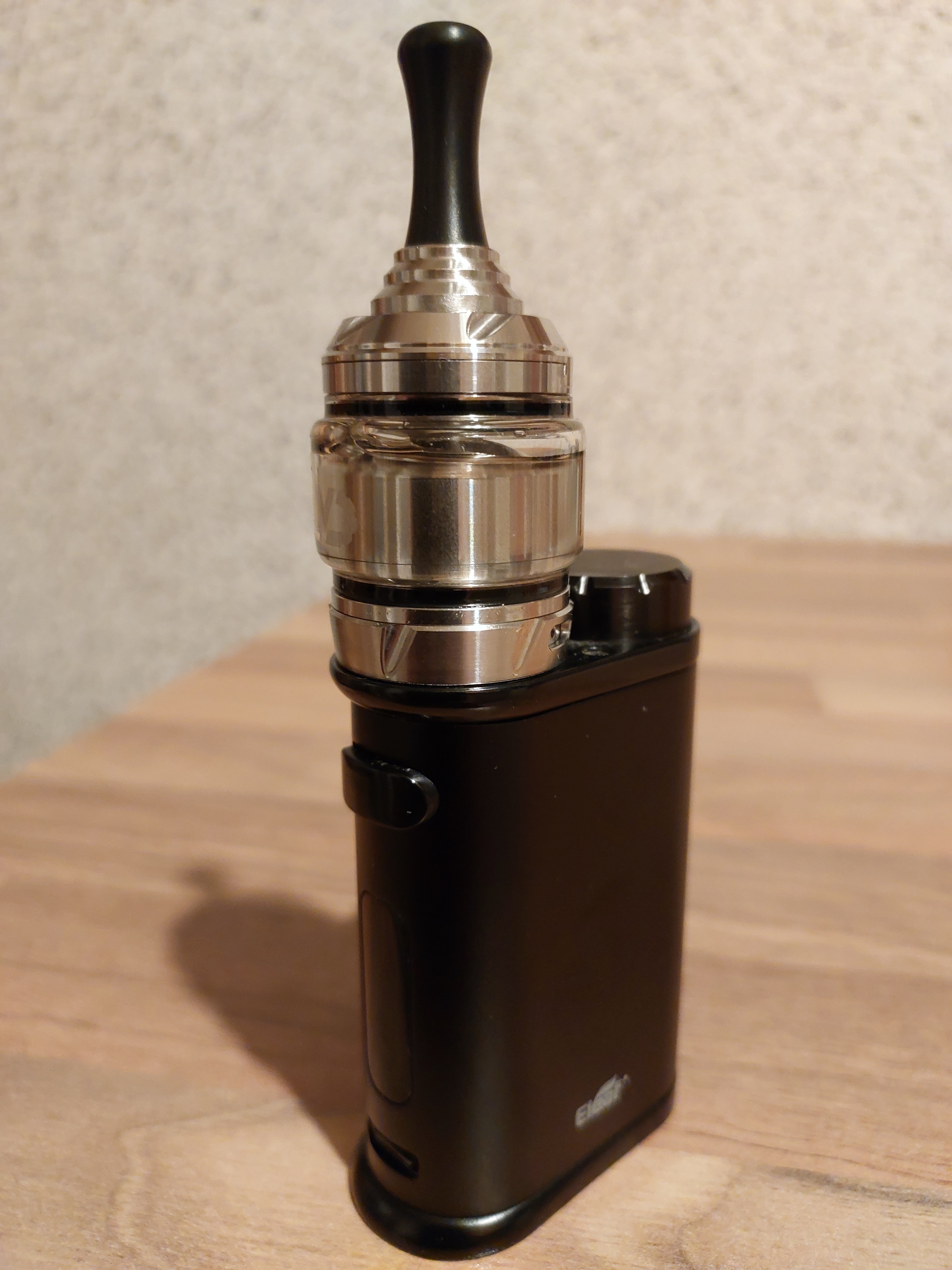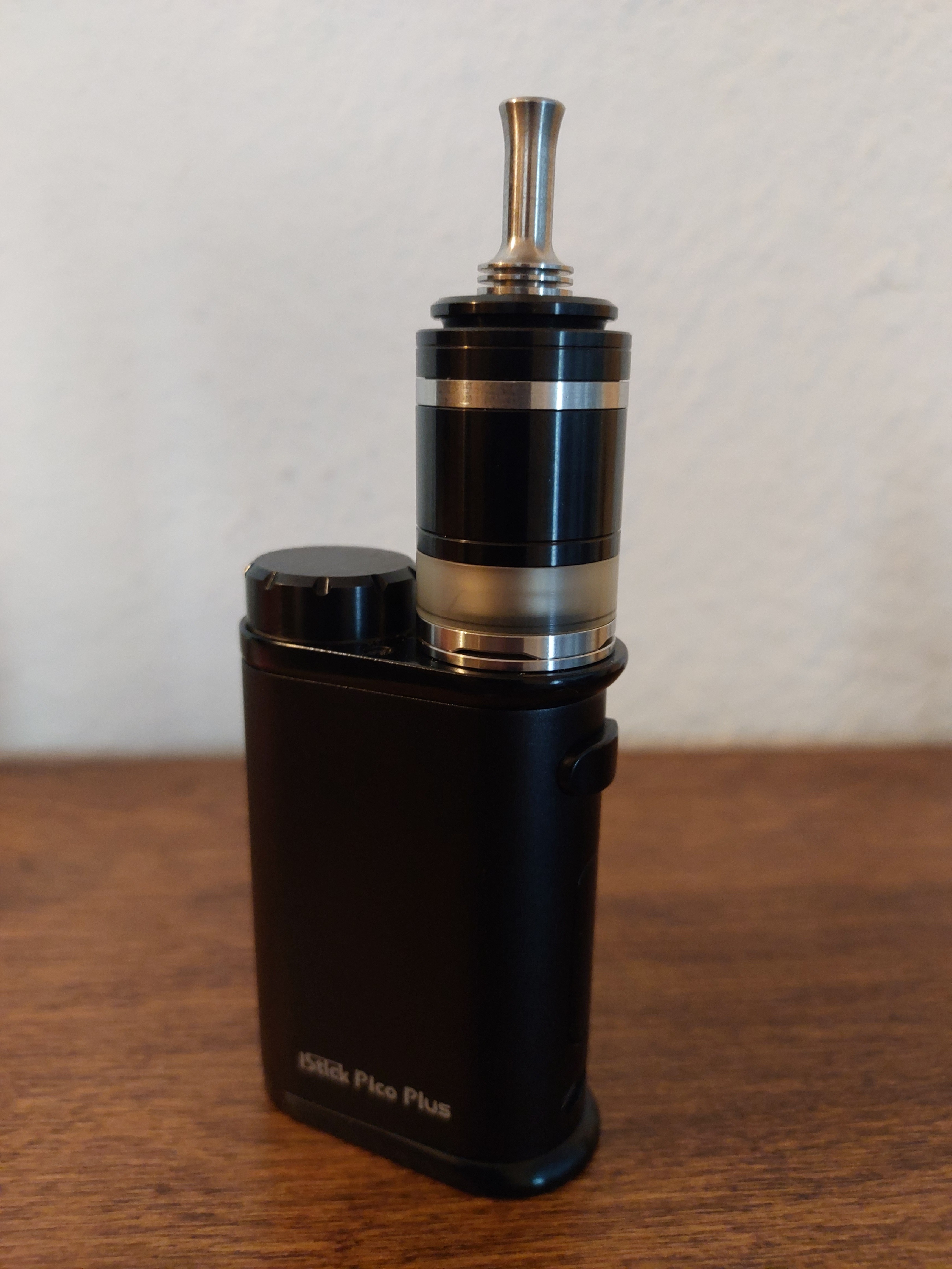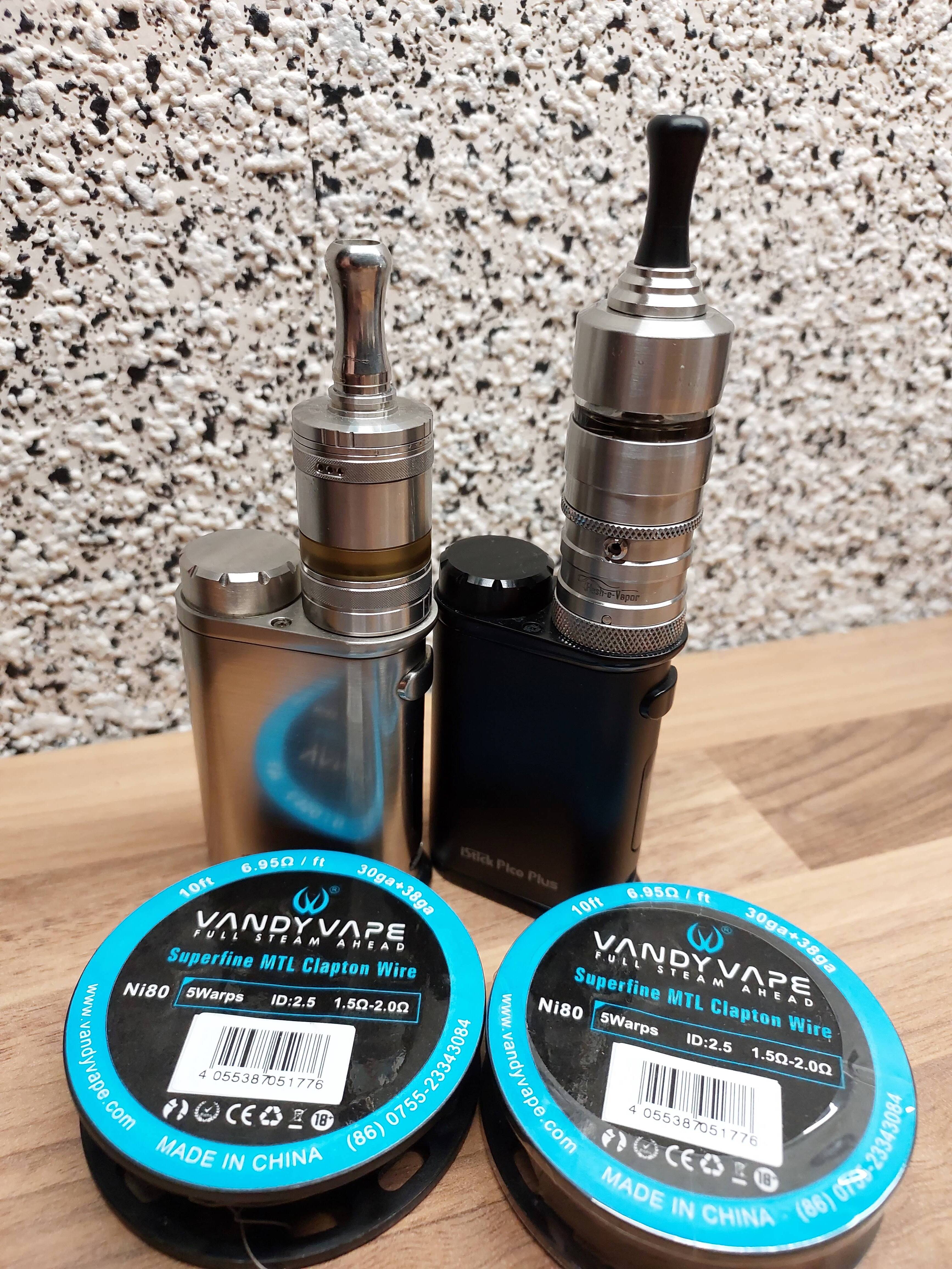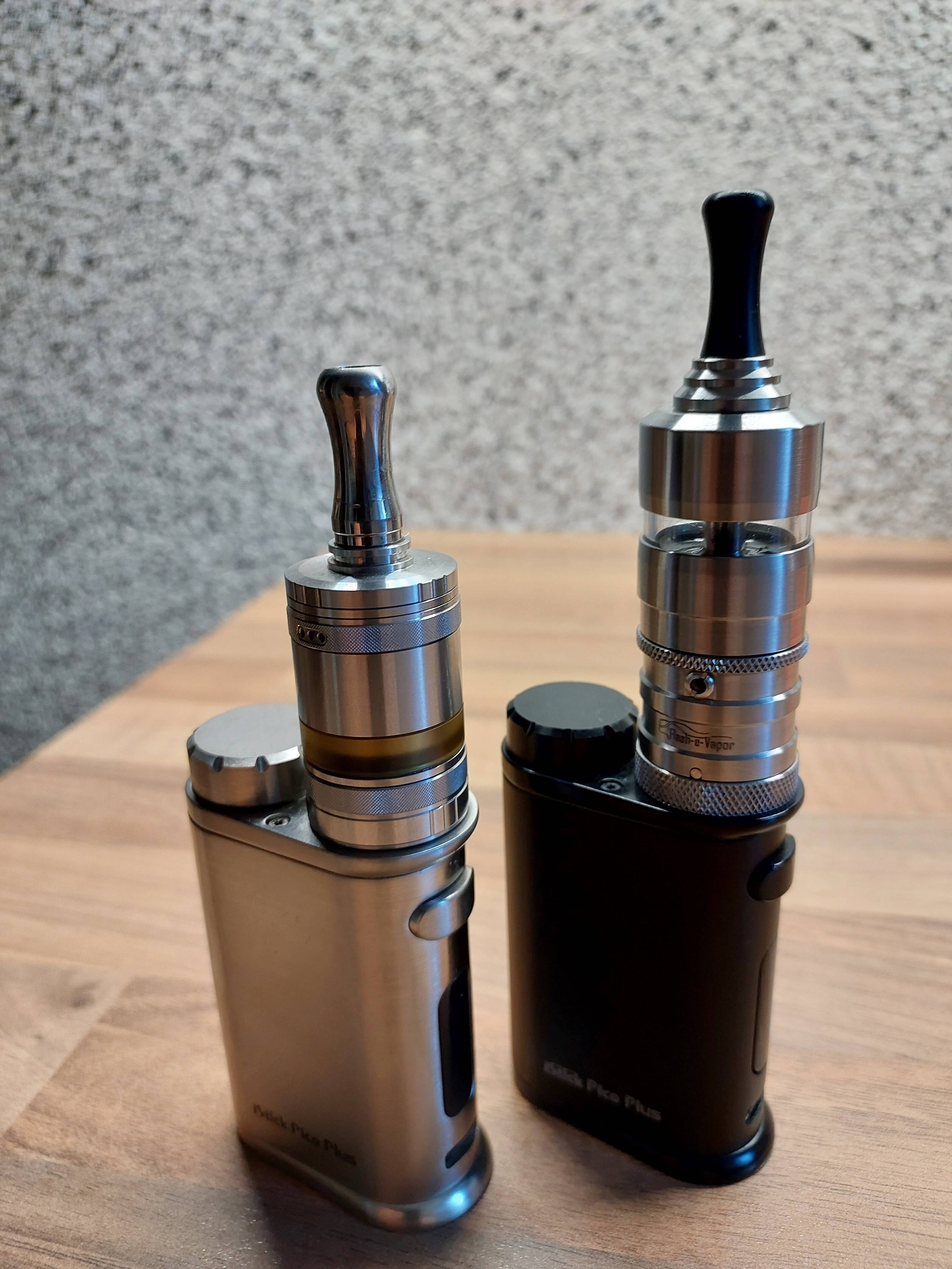 Heute eingezogen, Tankerweiterung musste ich in einem anderen Onlineshop kaufen. Kam aber alles heute an. Dampft prima, gefällt mir gut. Erste Wicklung gleich gelungen. Das DripTip wird leider zu heiß und das bei 12 Watt, 1,2 Ohm. Darum als Übergangslösung das silberne verwendet. Passt. Oben am Tank war eine kaum sichtbare Lackablösung, aber auch das ist nicht schlimm. Schwarzen Punkt mit Marker drauf, weg ist es. Bin da pingelig, meine Frau sah da nichts.