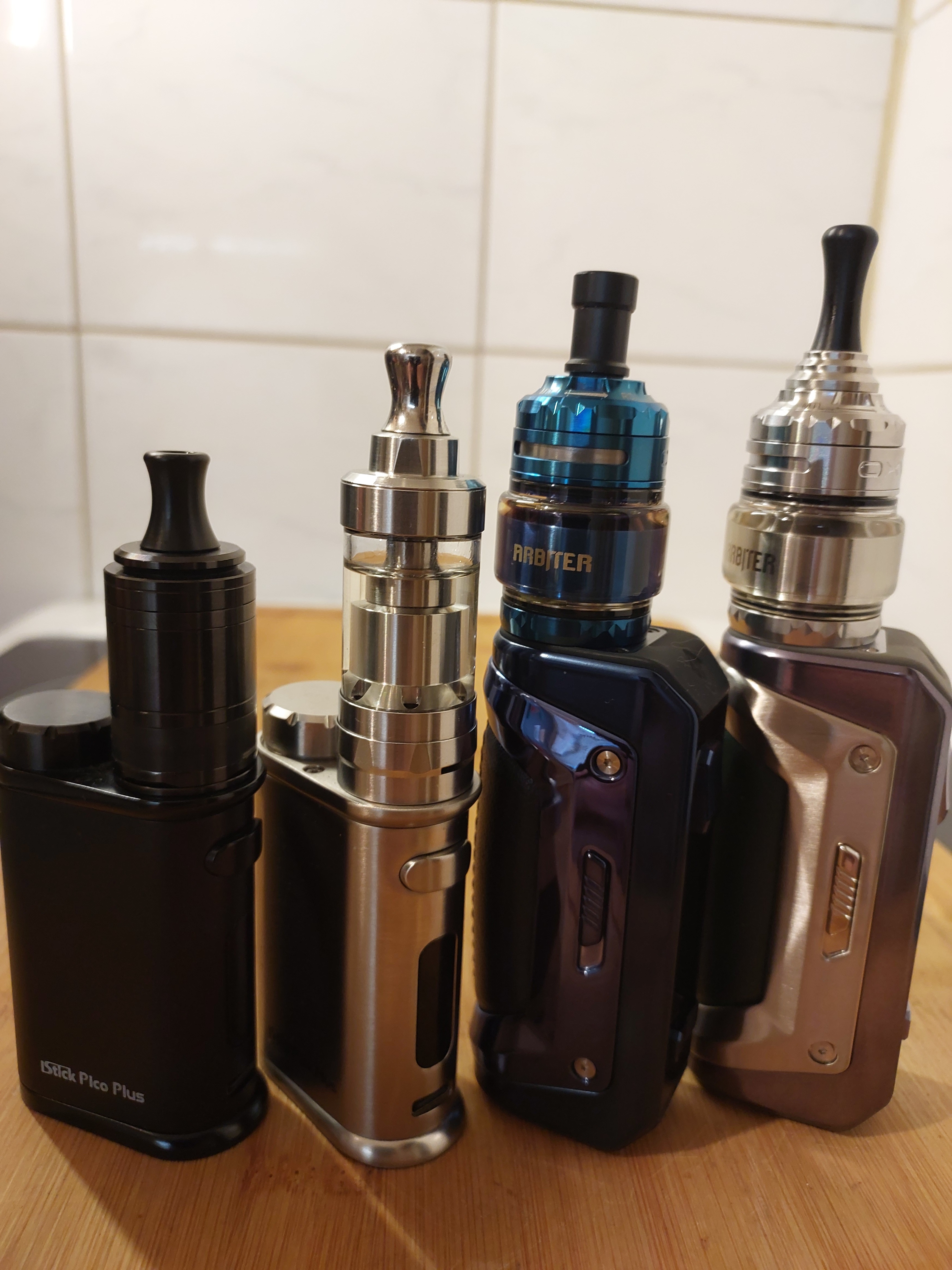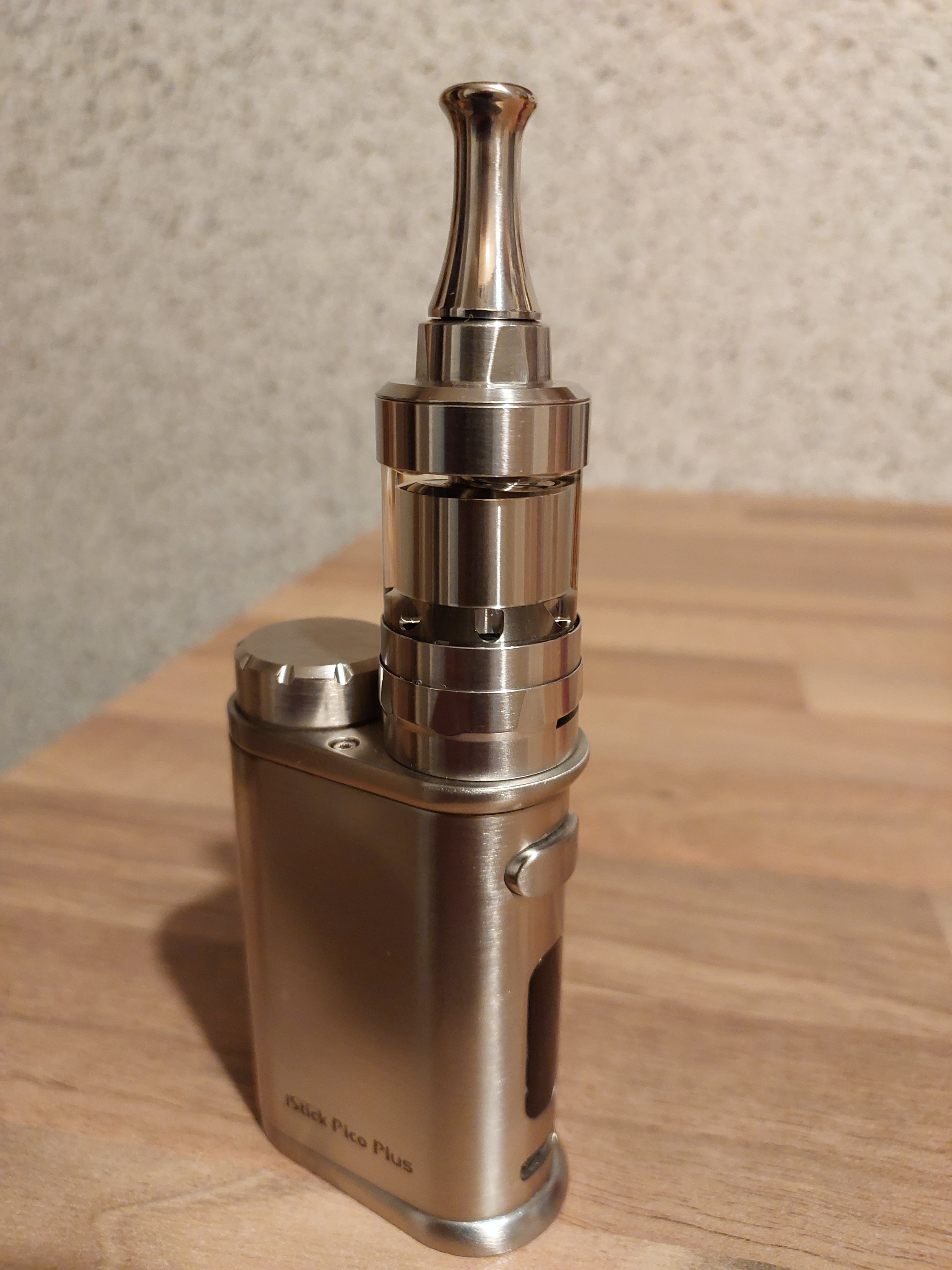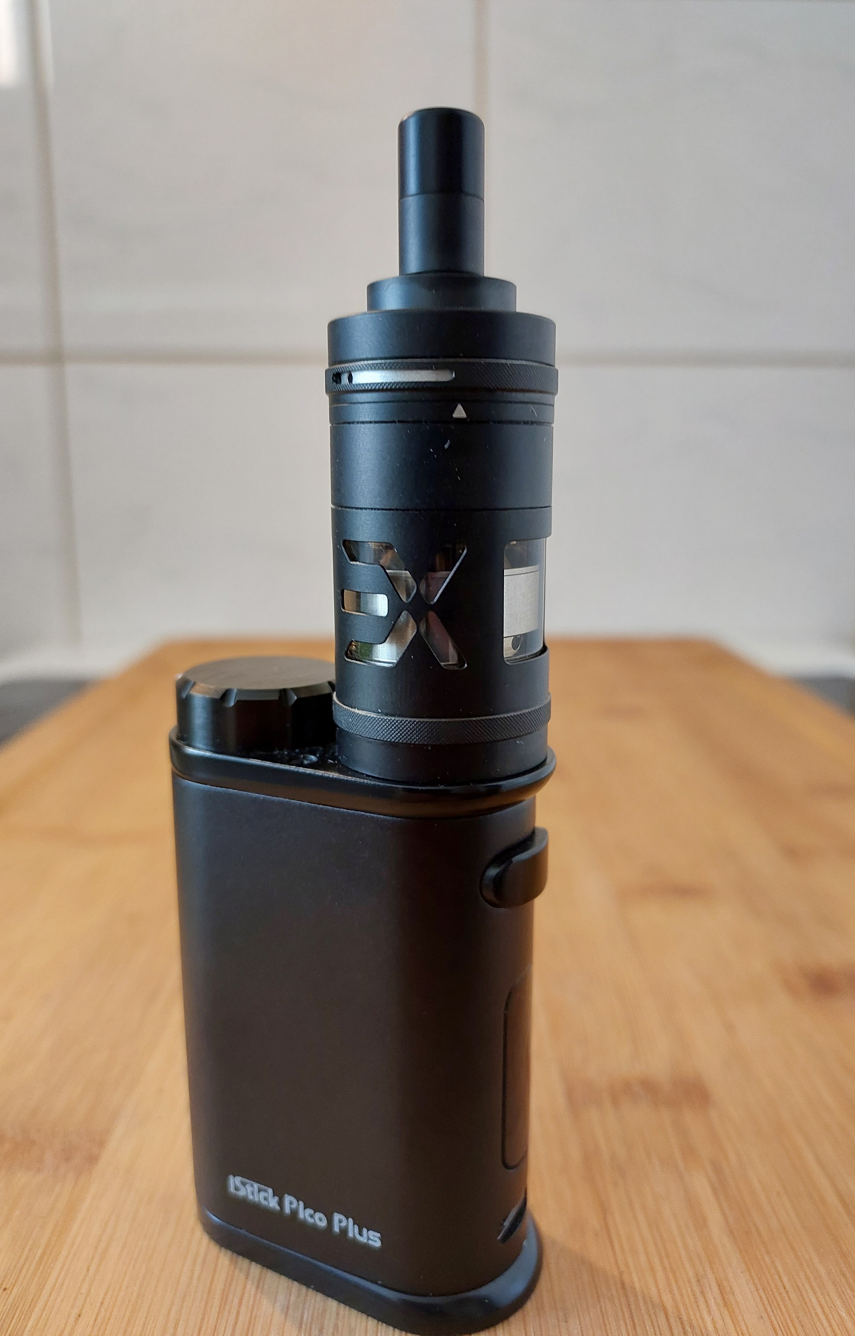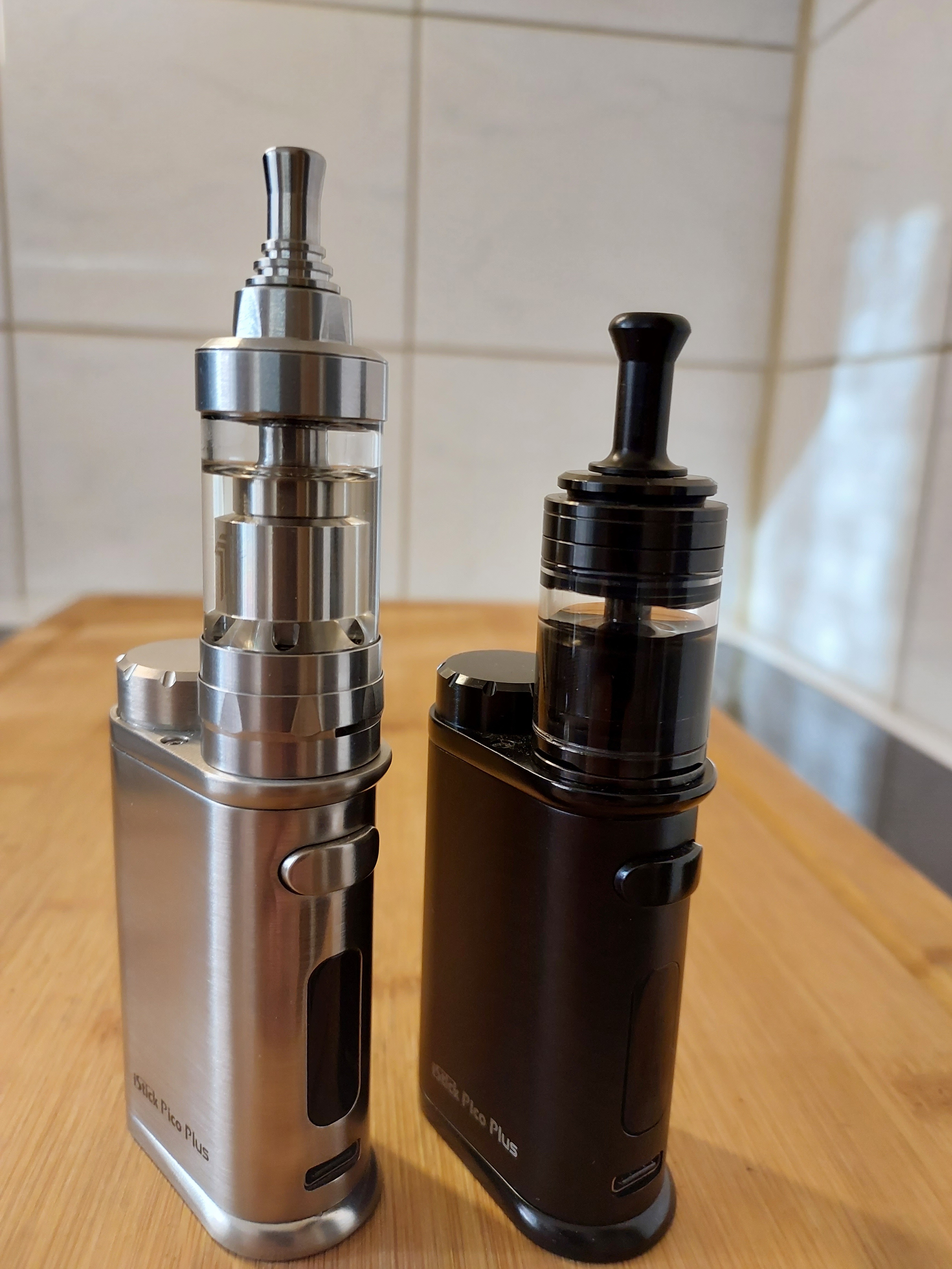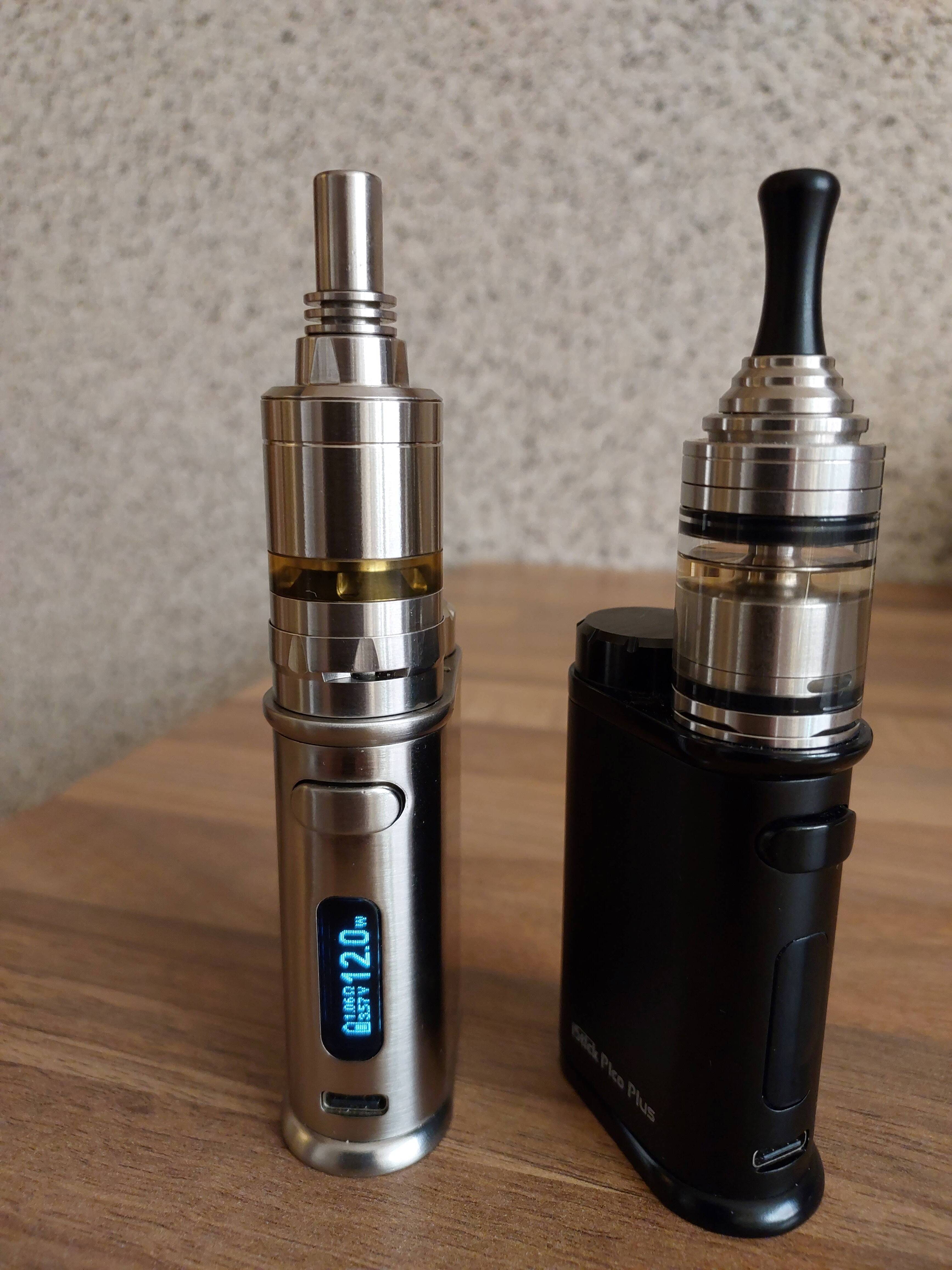 Heute eingezogen, Tankerweiterung musste ich in einem anderen Onlineshop kaufen. Kam aber alles heute an. Dampft prima, gefällt mir gut. Erste Wicklung gleich gelungen. Das DripTip wird leider zu heiß und das bei 12 Watt, 1,2 Ohm. Darum als Übergangslösung das silberne verwendet. Passt. Oben am Tank war eine kaum sichtbare Lackablösung, aber auch das ist nicht schlimm. Schwarzen Punkt mit Marker drauf, weg ist es. Bin da pingelig, meine Frau sah da nichts.