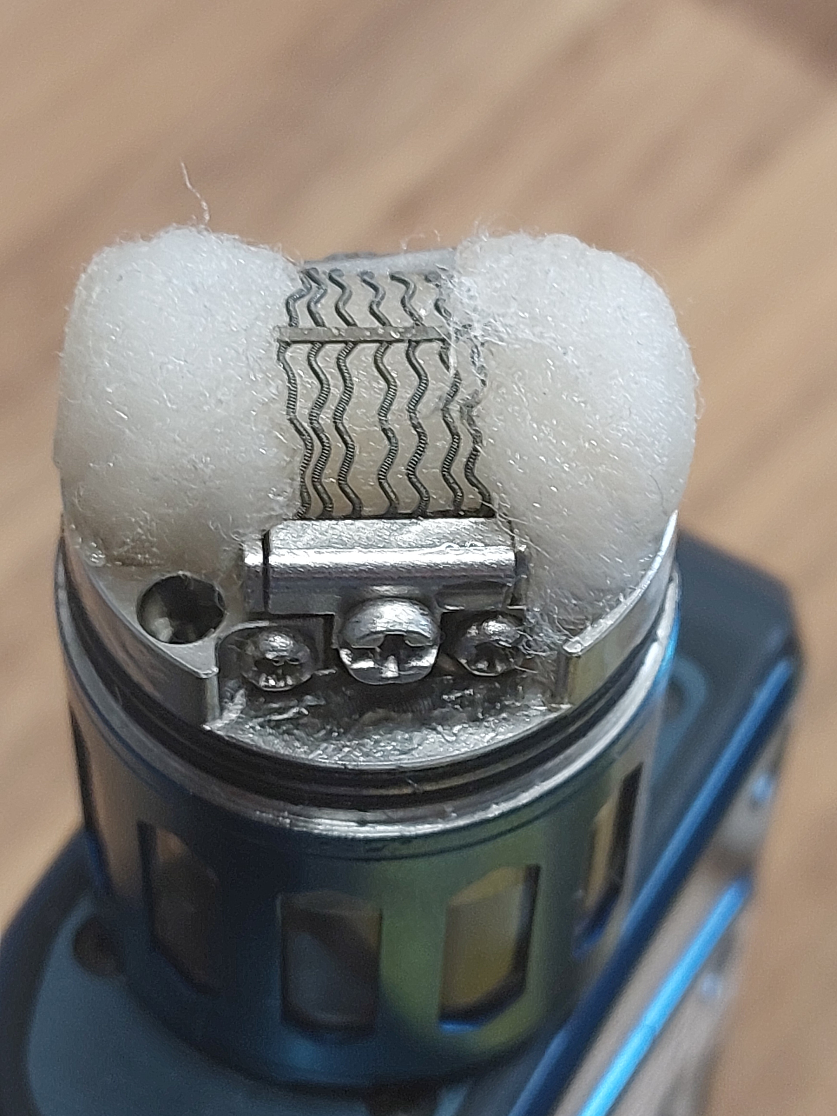Heute ist das Sonderangebot schon angekommen. Erste Wicklung mit Meshstreifen, Neuland. Ich war ja etwas irritiert über die Wattemenge, was da durch muss, hihi. Die Wicklung ist zwar nicht hübsch, aber es dampft und nichts kokelt. Geschmack ist richtig gut. Leider kein Ersatzglas dabei und die Schrauben für das Festklemmen des Meshstreifens sind mir auch nicht ganz so geheuer. Muss ja nicht mit Gewalt angezogen werden. Mal sehen, ob die Schrauben länger gut halten oder nicht so schnell ausnudeln. Freue mich aber sehr. Nun will ich noch schauen, wo ich günstig diese Meshstreifen oder welche auf Rolle kaufen kann.