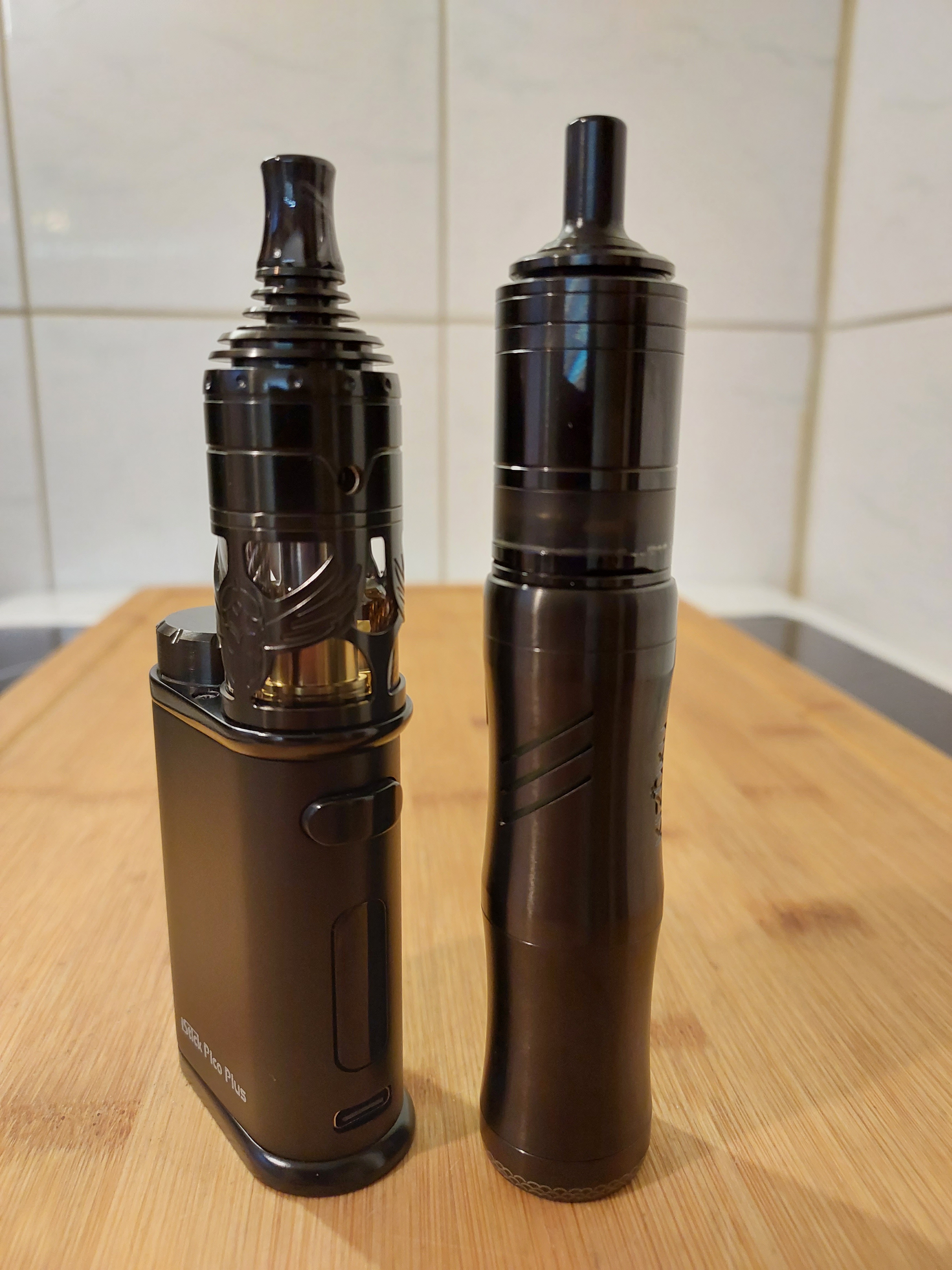 Ich wollte nicht aufgeben wegen der einen Klemme beim schwarzen Tank. Heute kam die Erleuchtung. In einem Wickelvideo wurde empfohlen, die Clapton-Meshplatte nach innen zu nehmen, wo die Querstrebe und die Einzeldrähte aufgepunktet sind. Das hatte ich dann auch so gemacht. Heute habe ich es genau umgekehrt probiert, also nach oben, so dass innen anliegend an der Klemmfläche alles glatt ist von der Meshplatte. Hat funktioniert. Ist zwar nicht ganz zu verstehen, weil es bei den anderen geht, aber egal. Was noch eine Frage offen lässt, sind die angegebenen Ohmwerte. 0,2 war auf der Packung angegeben, aber ich komme bei beiden Verdampfern bei 0,27 Ohm an. Habe auch vorsichtig ausgeglüht, scheint aber ok so zu sein, denn es dampft und schmeckt sehr, sehr gut. Ich lasse es nun so. Mal sehen, wie lange die Wicklung nun hält. Habe damit noch keine Erfahrungen gemacht.