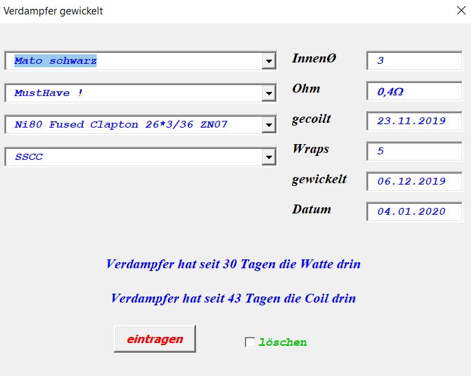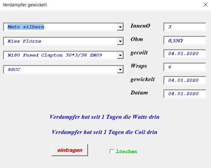 ich hatte mir im November/Dezember mehrere Aromen zum probieren geholt...