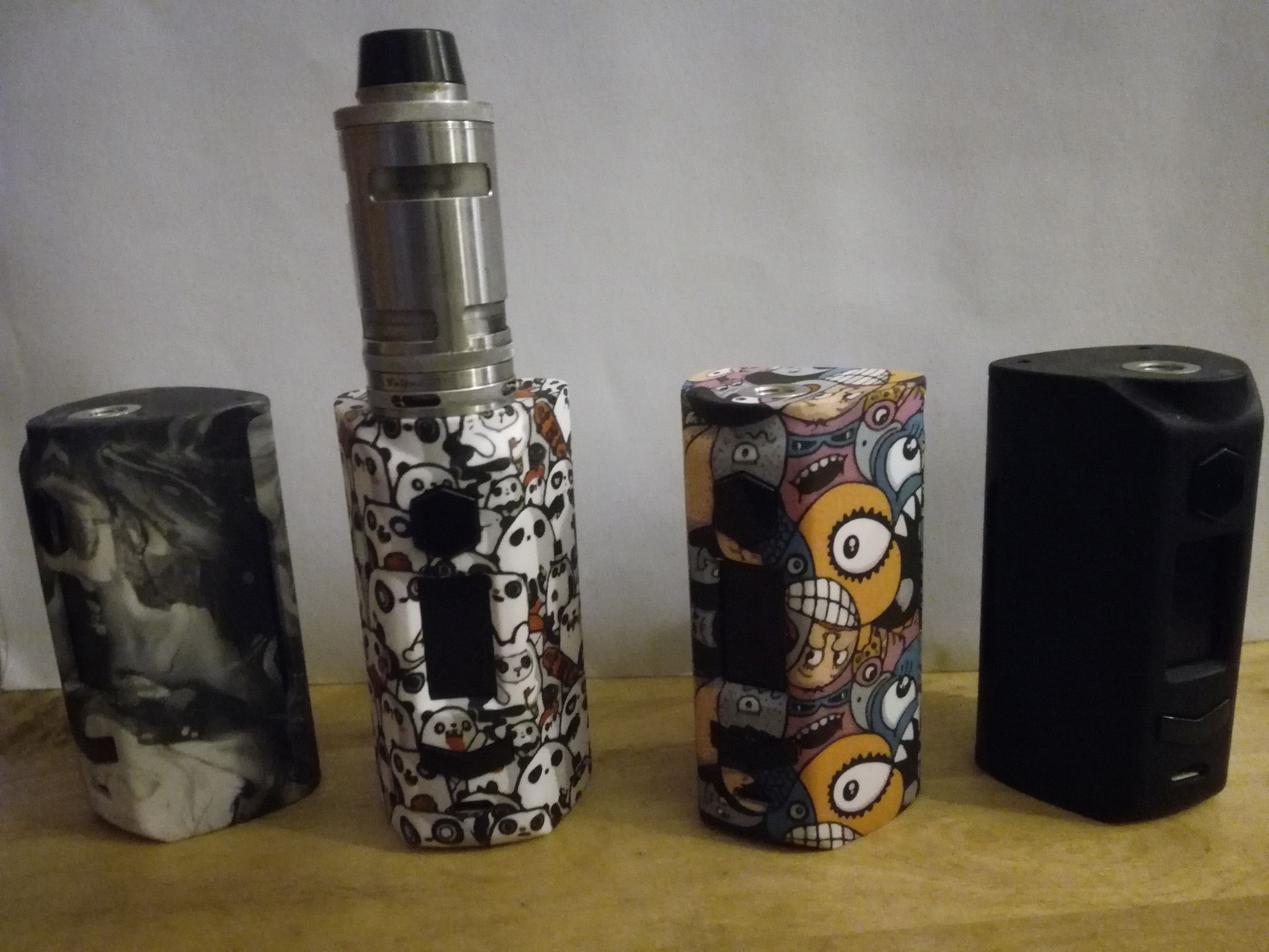 Obwohl der AT ein Plaste-Clon der Minikin V2 ist, finde ich ihn wirklick klasse. Ist echt robust das Ding. Zwei habe ich schon in Benutzung und zwei sind auf dem Weg zu mir. Vor allem finde ich die Bedruckungen einfach klasse. Mal was anderes als uni. Das Handgefühl ist auch 1A.