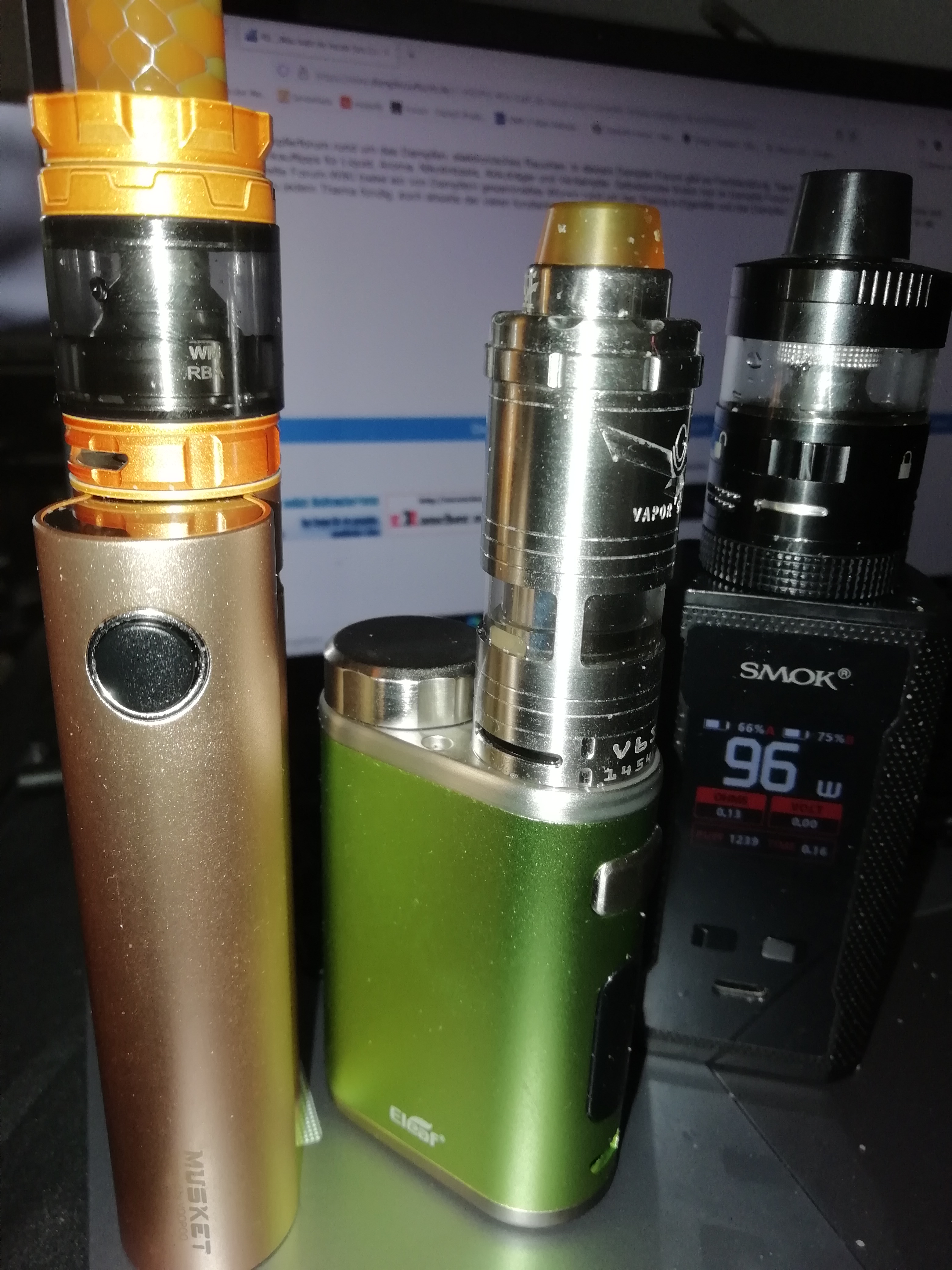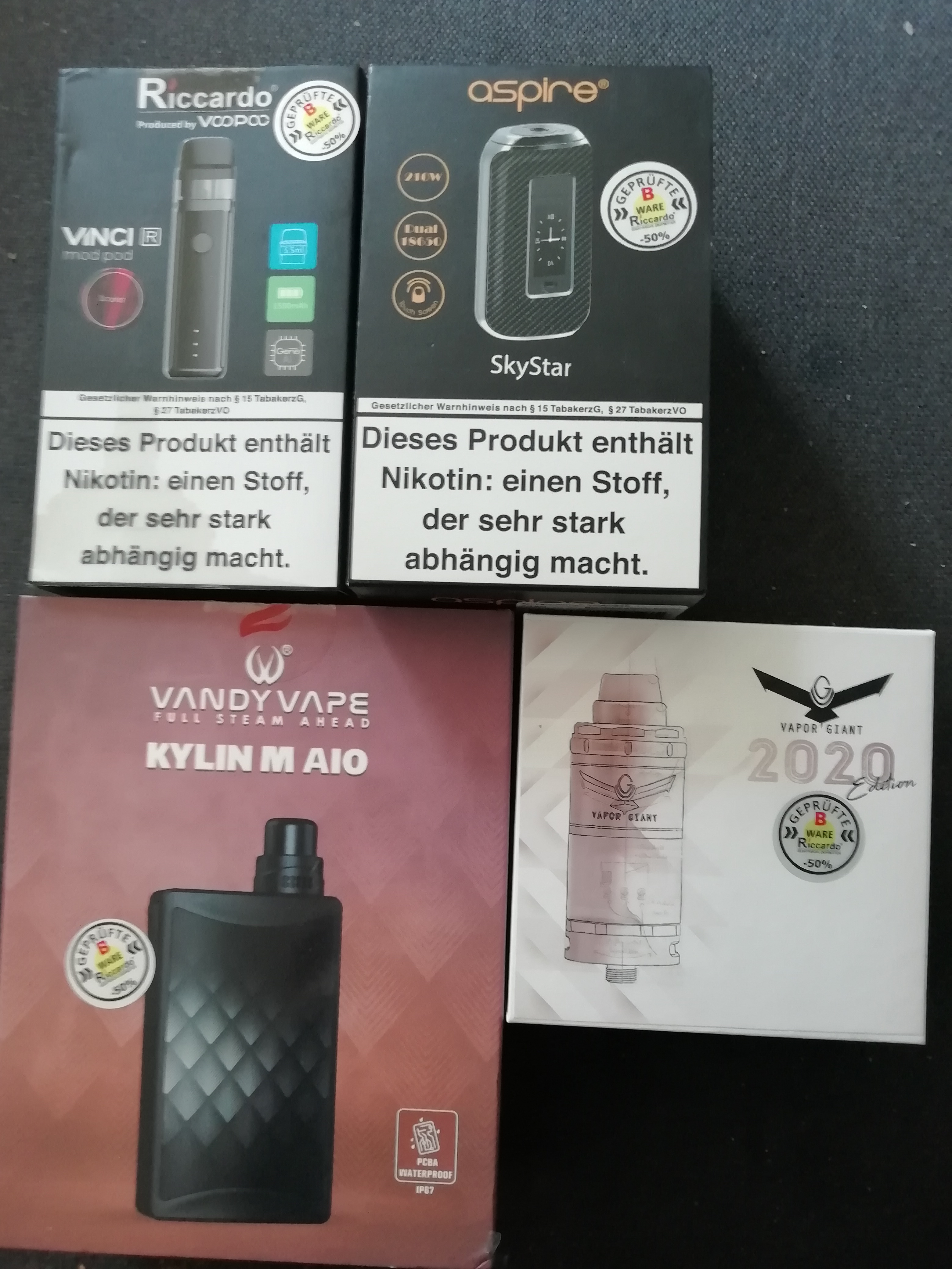 Schöner Scheiß! Am Montag kam der Vapor Giant V6 S an, heute der V6 M 2020 Edition sowie ein paar andere Sachen und diese blöde Riccardo 15% Aktion hat mich jetzt auch noch dazu gebracht, den Vapor Giant Extreme zu ordern. Zwar alles als um 50% reduzierte B-Ware, aber ich glaube, ich sollte mich langsam auf die Suche nach einer Selbsthilfegruppe machen, oder vielleicht doch gleich selbst einweisen. So kann das jedenfalls nicht weiter gehen....