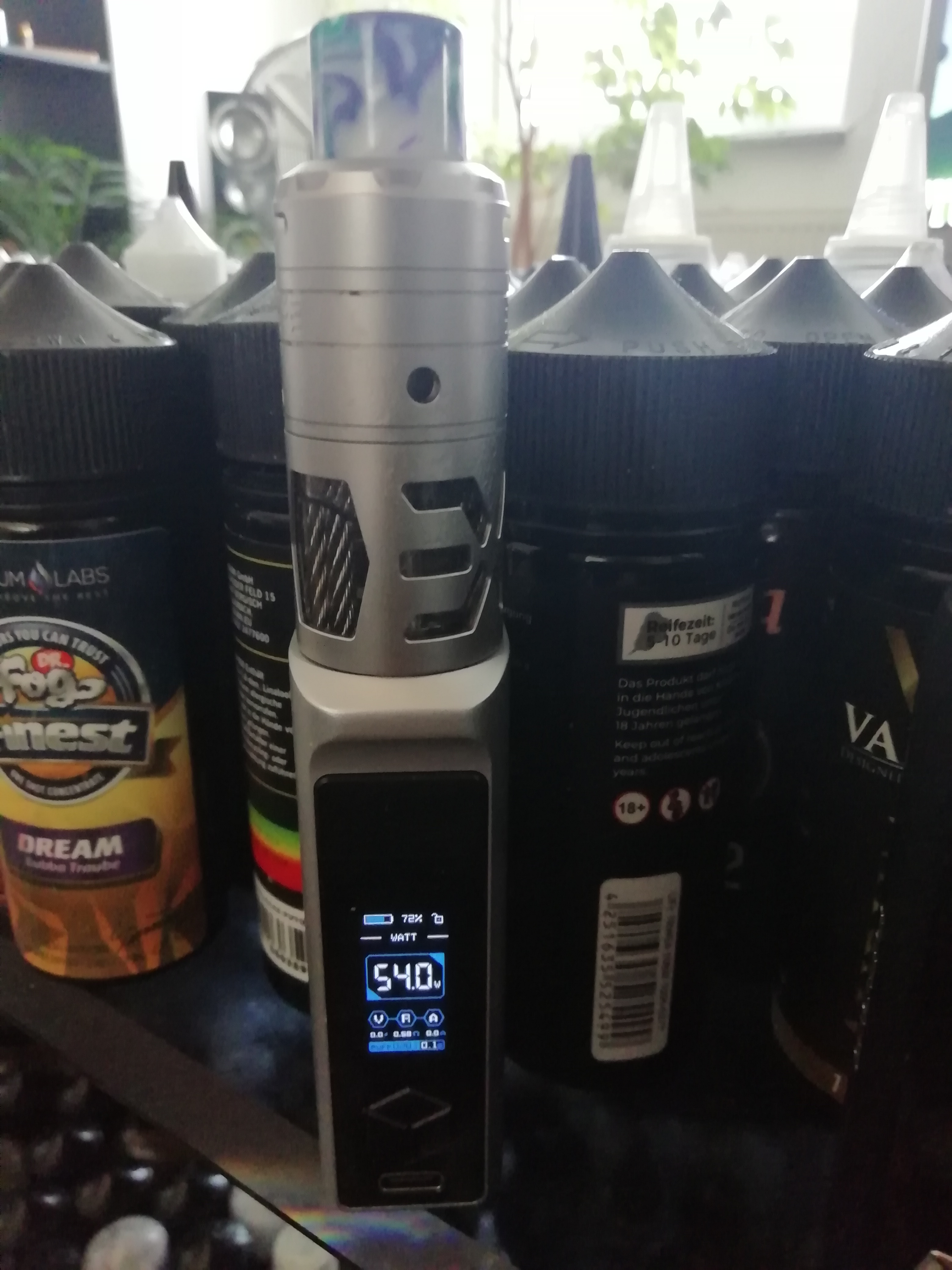 Einzig und allein das Drip Tip musste ich noch gegen ein höheres austauschen, da mit dem original mitgelieferten doch zu viel Hitze an den Lippen ankam.