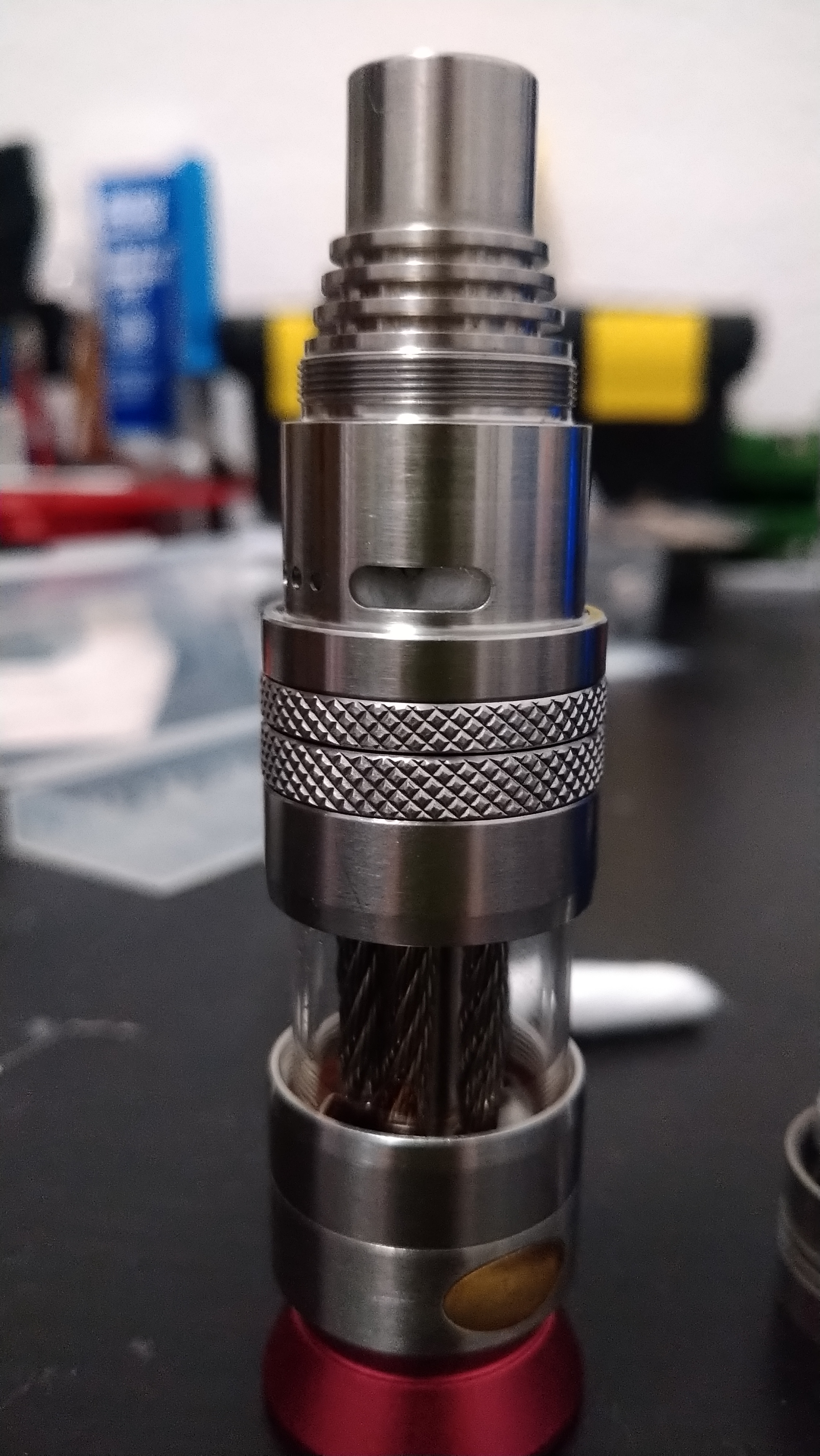 Ich musst den 2. Ring der Rändelscheiben etwas nach oben drehen damit die Airflow genau auf den Coils sitzt und nicht von der Seite in die Coil bläst.