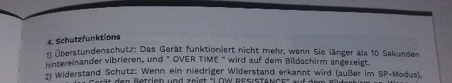 Mein zweites Highlight in der Beschreibung... das Gerät wird nicht mehr funktionieren, wenn man länger als 10 Sekunden vibriert.