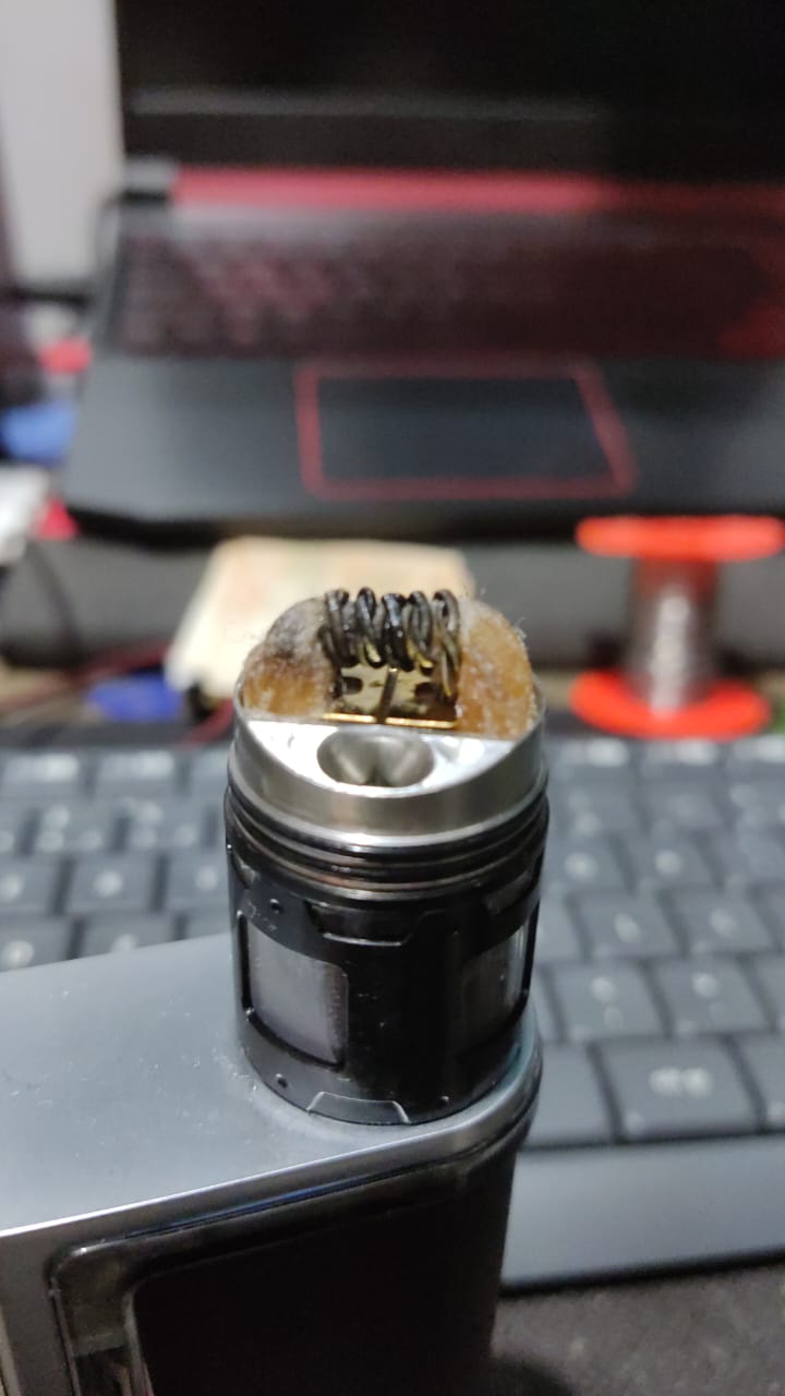 Das vierte ist, dass ich es in meinem täglichen Leben benutze, eine 6-mm-Spule, toller Durchfluss, heißer Schlag, tolle Konstruktion, aber man muss aufpassen, dass es keinen Teil der Artemis berührt, ich lasse es mit 4 mm stehen und es ist ziemlich nah am Schornstein, aber der Geschmack ist großartig, es sieht aus wie eine Doppelspule ... hehe