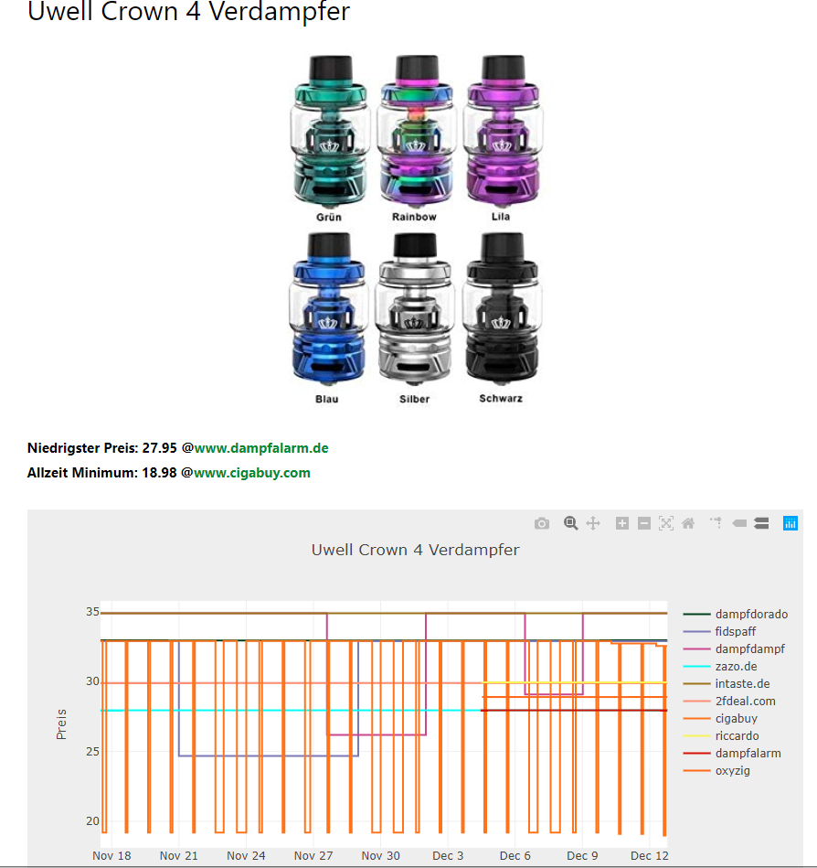 Hallo liebe Dampfer, abgesehen von unseren exklusiven Coupon, der unbefristet gültig ist, gibt es 12% Rabatt vom 10.12-26.12. Hinzu kommt, dass Bestellungen über $56, weiß Gott wie die auf so eine wunderbare Zahl kommen, Versandkostenfrei sind. Das ganze könnt ihr mit dem Code: 12OFF bekommen. Aber das ist noch nicht alles, nein bei einer doppelten Zahl gibt es natürlich noch Angebote bei denen ihr nur den halben Preis zahlt: