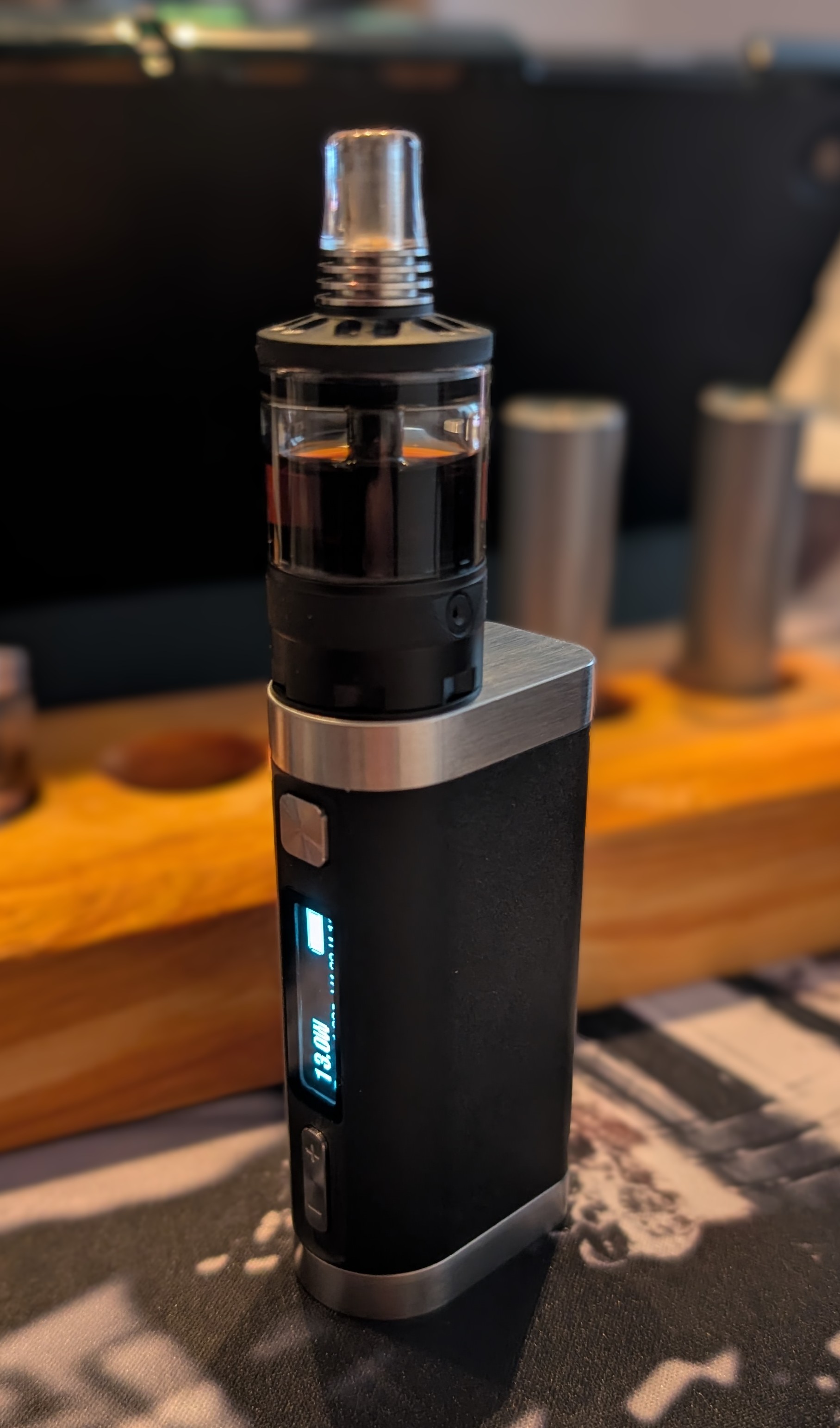 Fiel mir doch heute ein das ich letztens beim aufräumen den Fat Rabbit Solo gesehen habe. Den hab ich eigentlich nie benutzt. Dachte mir so DL kann man ja auch wieder mal dampfen. Also mal schnell mit einfachen 0,4er V2a Runddraht gewickelt. 0,5 Ohm mit moderaten 20 Watt. Selbst das wirft ganz schöne Wolken😂. Und schmeckt👍