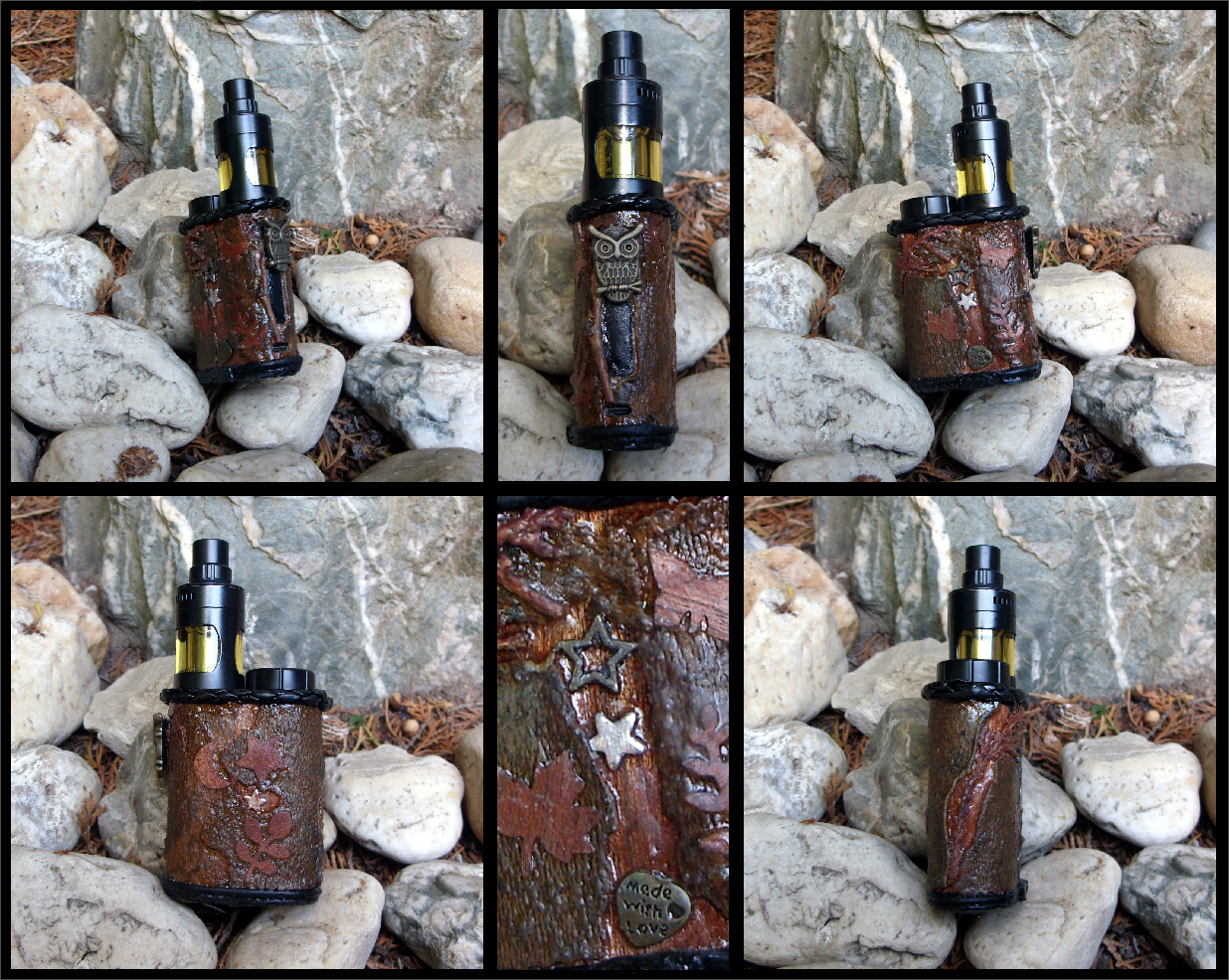 Mein erster Eindruck kurz nach der Fertigstellung war der eines Überfrachtet-Seins, zu viele Dinge und so, doch mittlerweile freue ich mich schon auf den Feierabend, wenn ich dann endlich schön gemütlich zu Hause diese Holz-Pico in die Hand nehmen, betrachten und dampfen kann. Heute finde ich ihr Aussehen sogar die gelungendste Bastelarbeit von allen. Wie sich das doch ändern kann, nicht wahr?